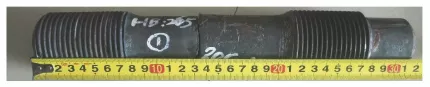 断裂螺栓的整体形貌和断面形貌如图1和图2所示。可见断裂部位在螺栓杆部,断口距端面约130mm。断面平整,呈颗粒状,无塑性变形,为典型的脆性断口。观察螺栓外表面,可见螺纹表面光滑,无凹痕、裂纹、锈蚀、毛刺或其他引起应力集中的缺陷。