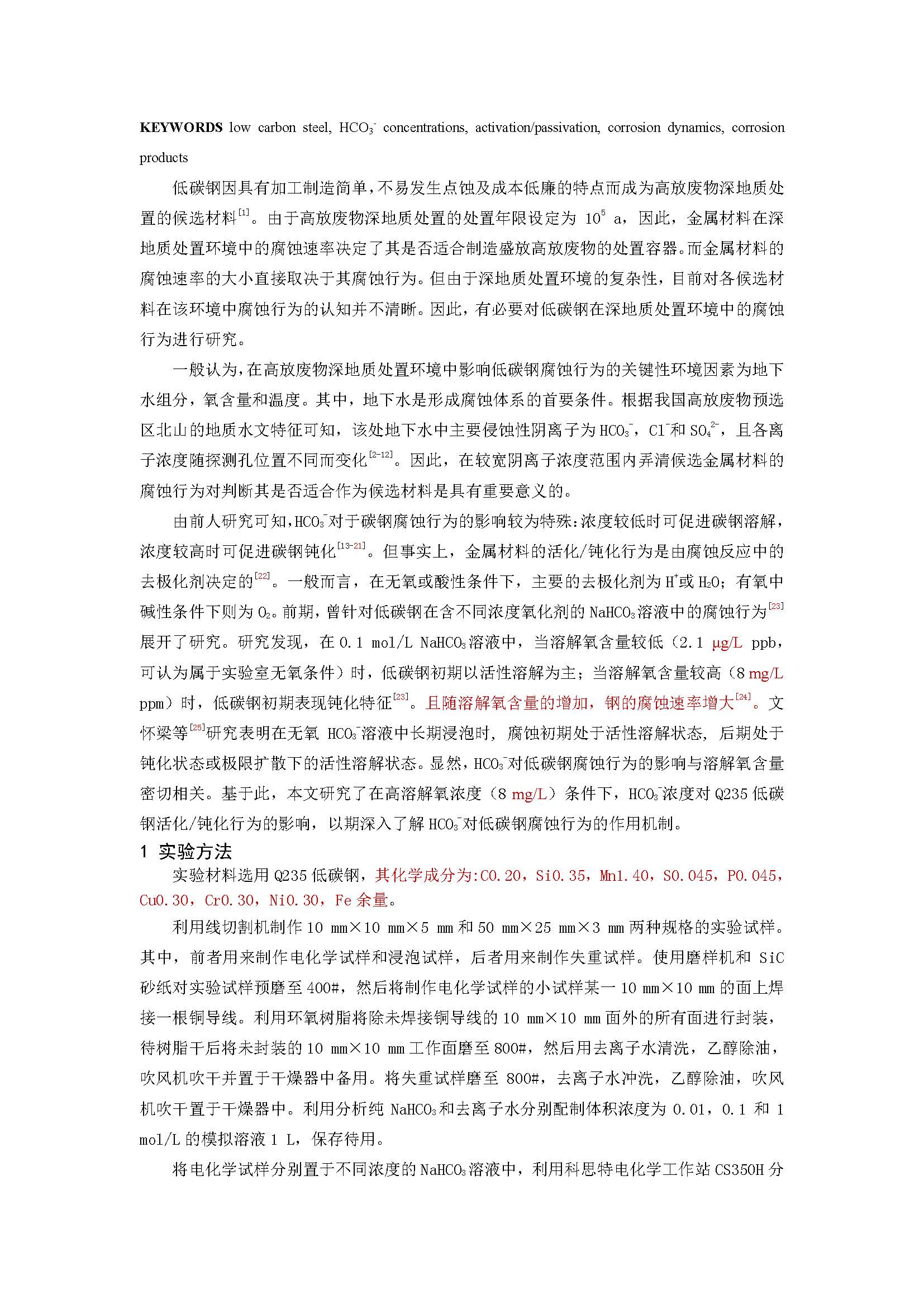 Q235 低碳钢在不同浓度碳酸氢钠溶液中的有氧腐蚀行为