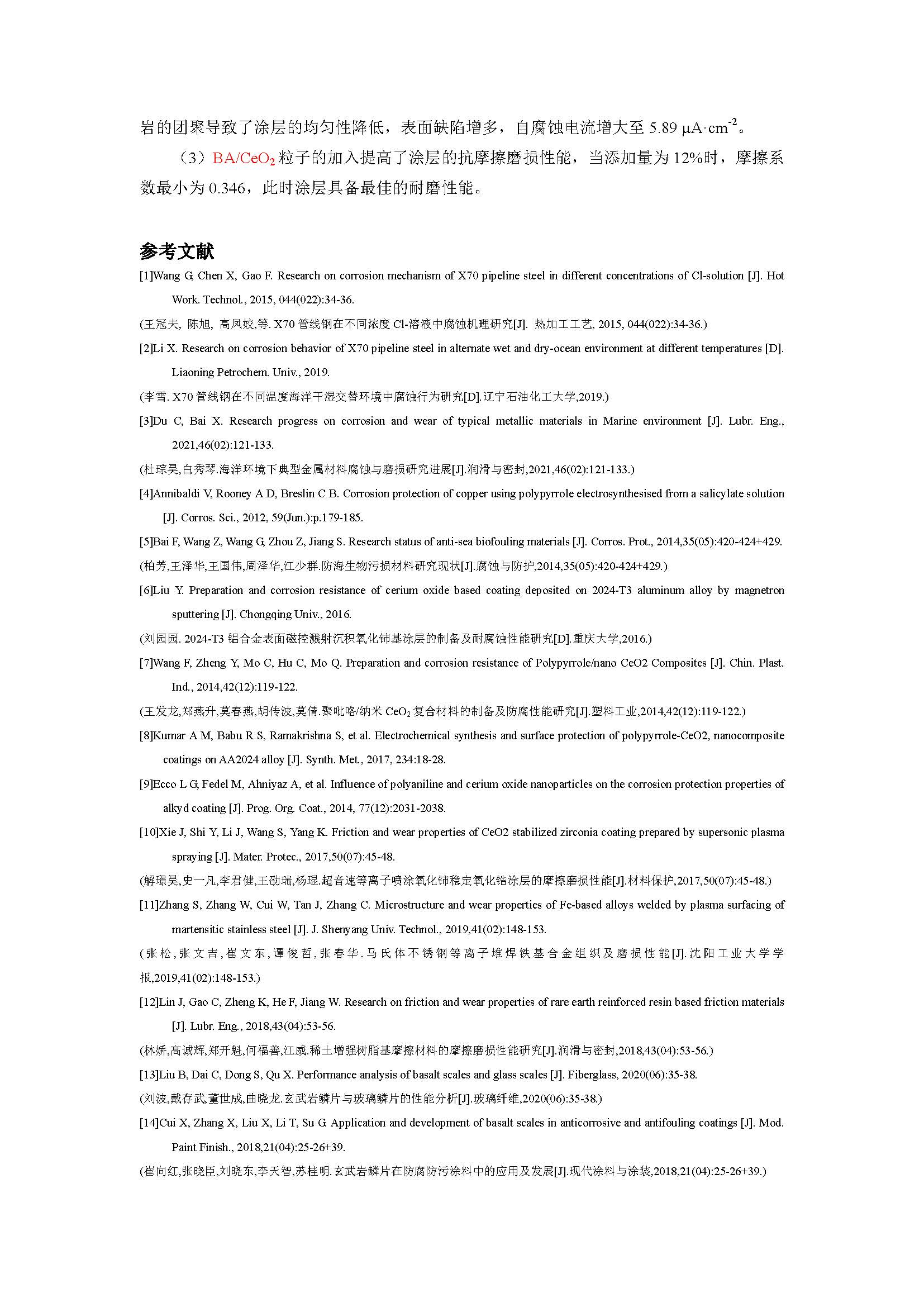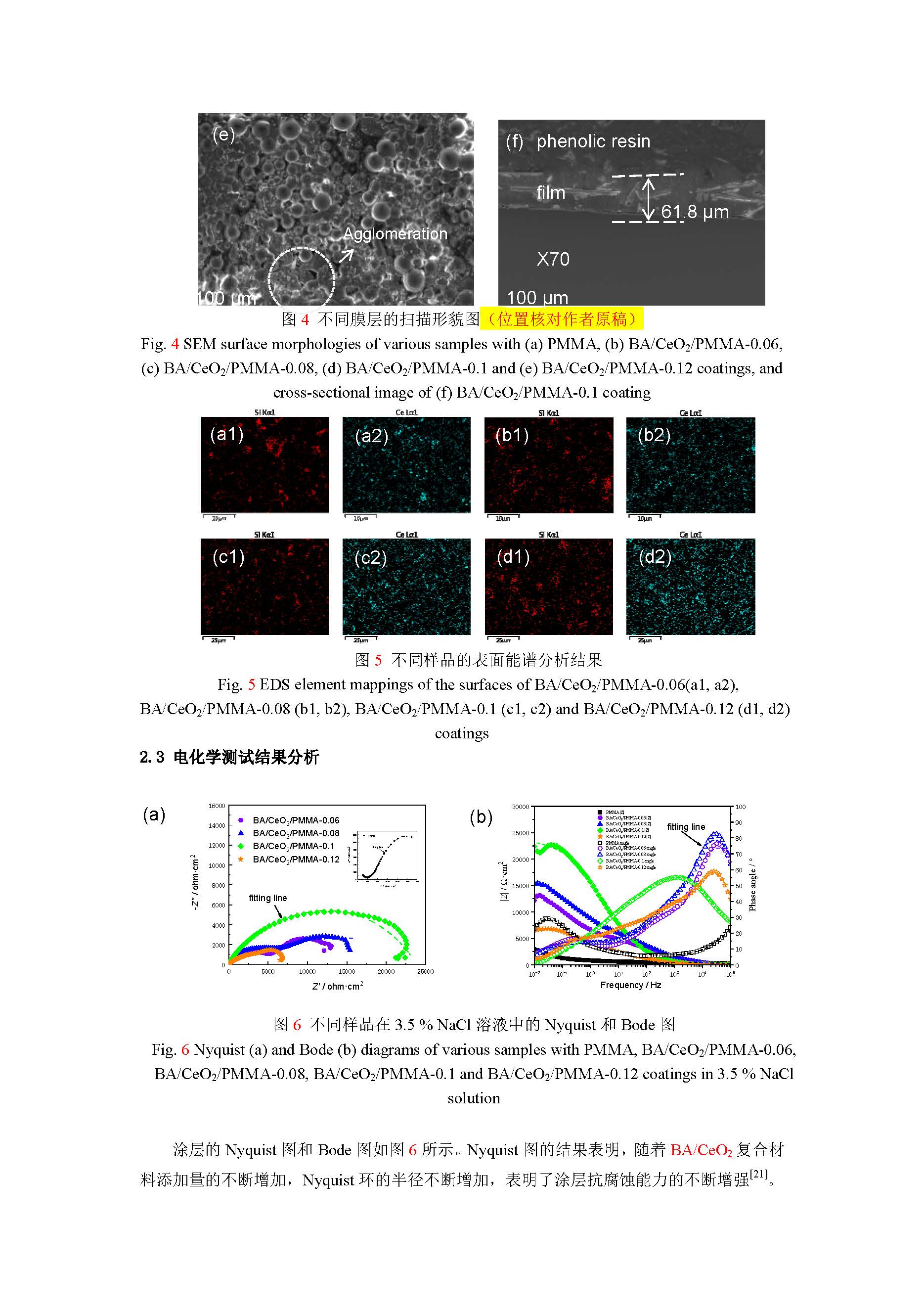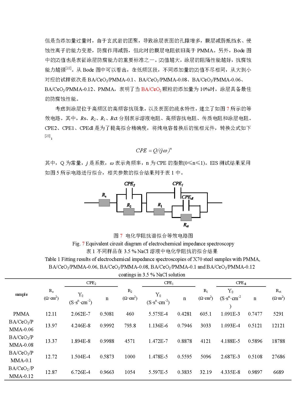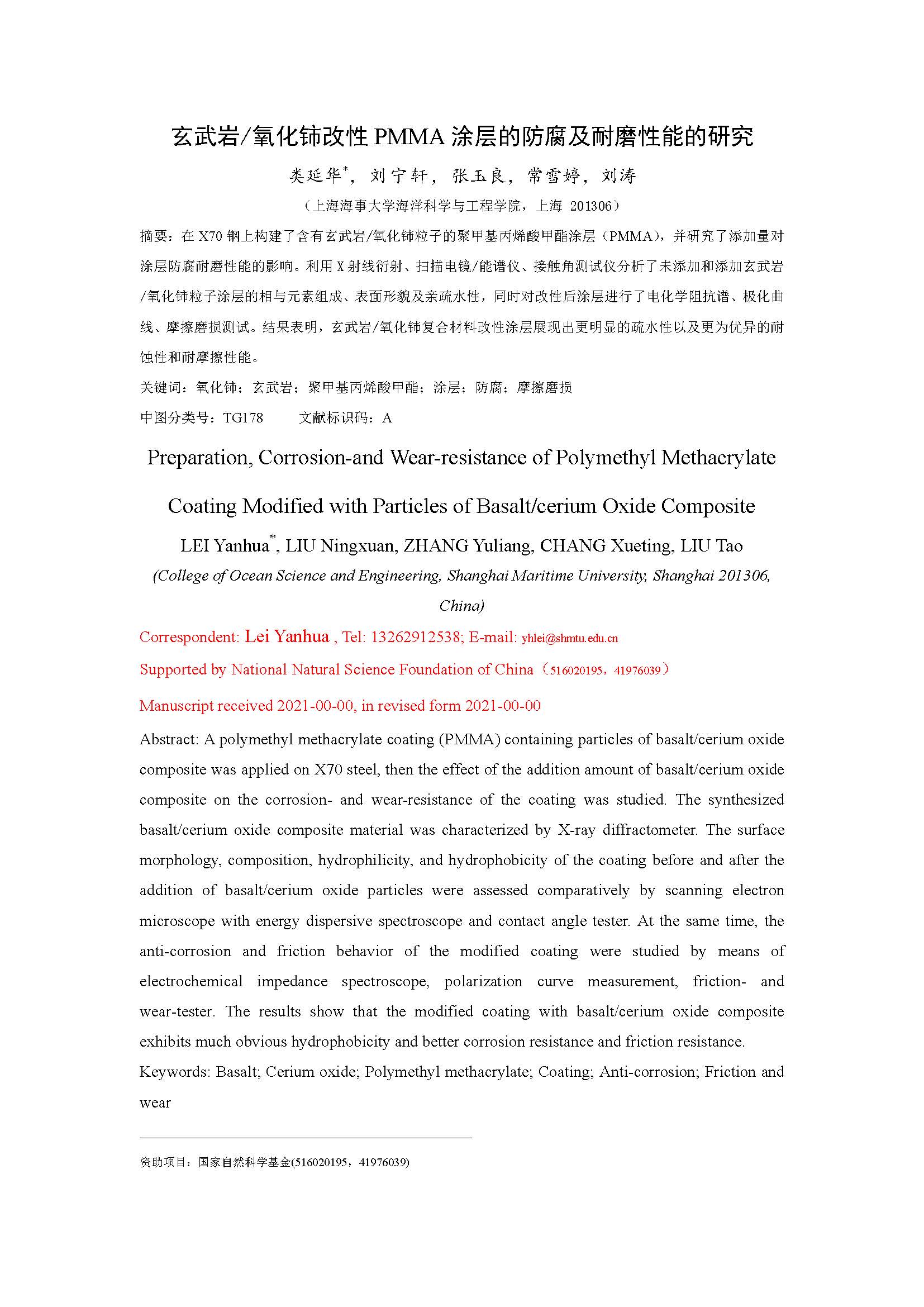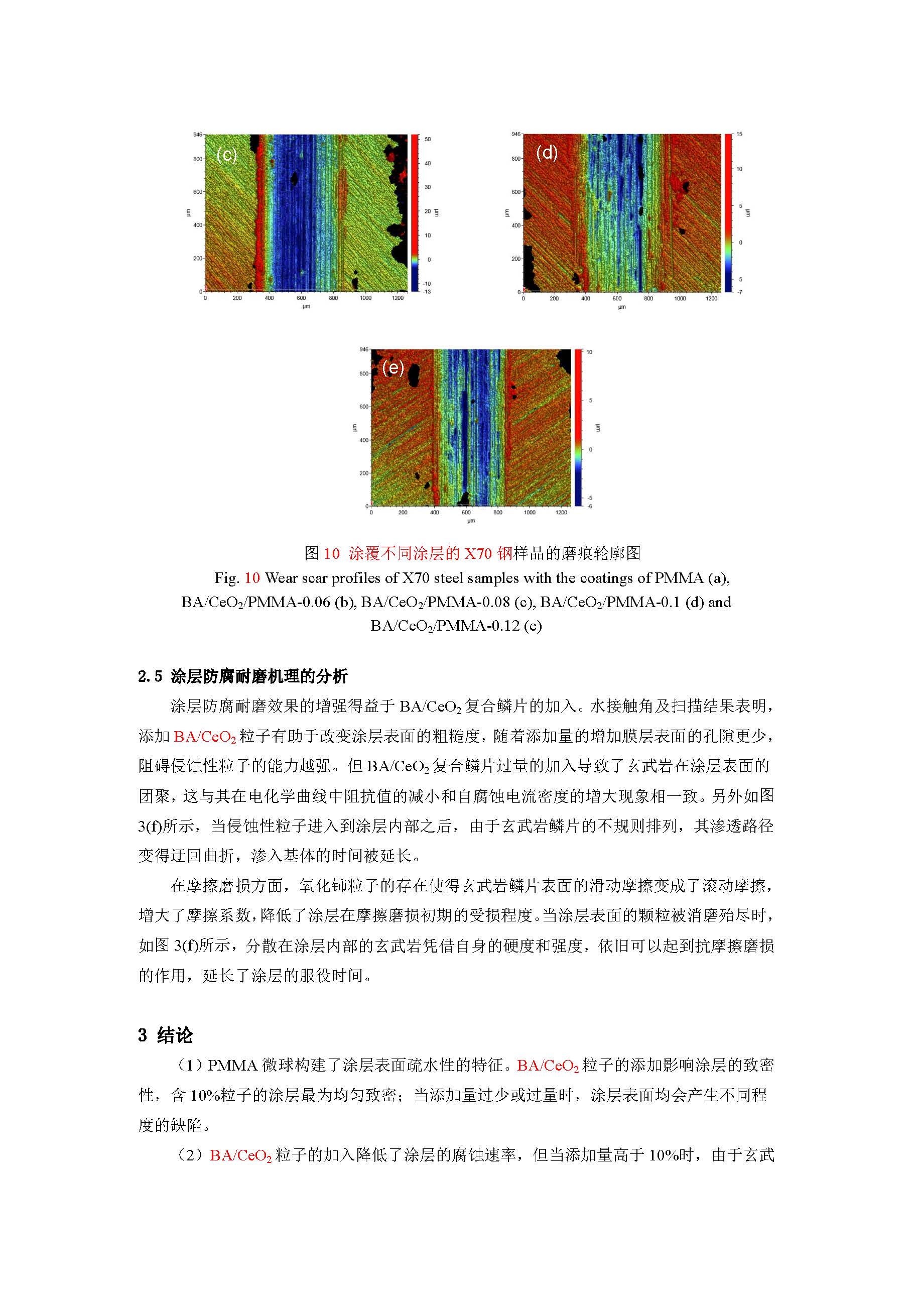 玄武岩/氧化铈改性 PMMA 涂层的防腐及耐磨性能的研究