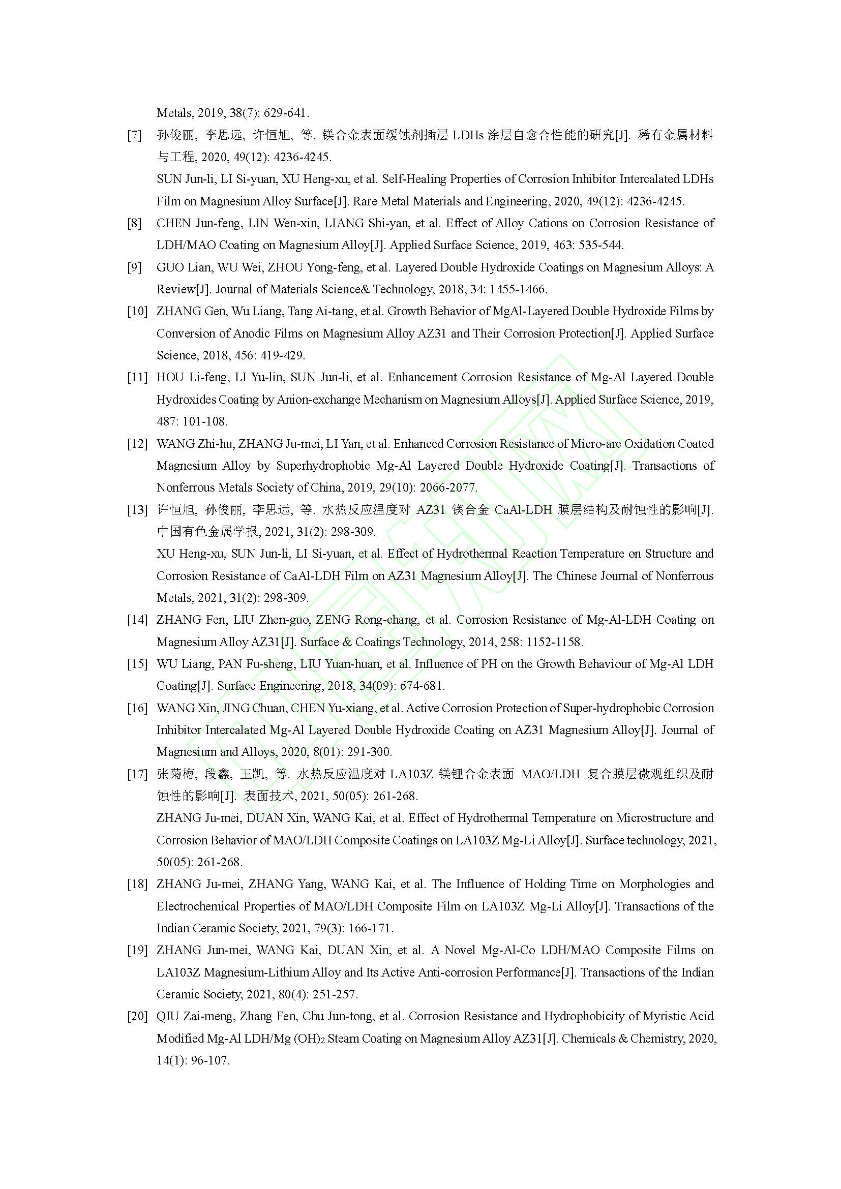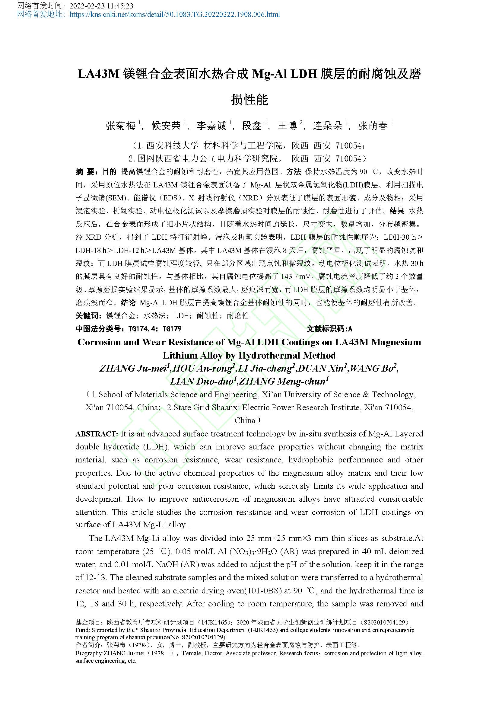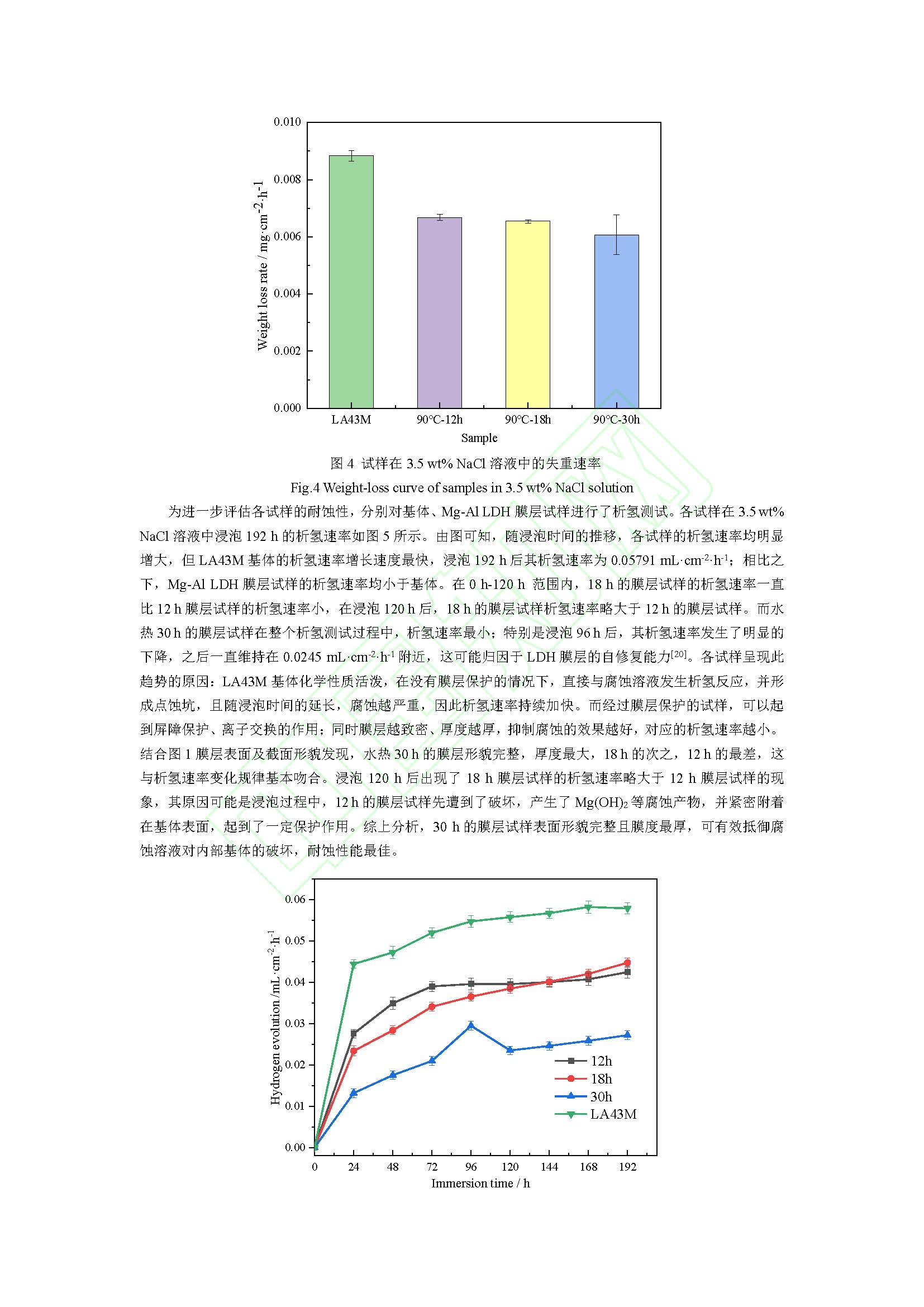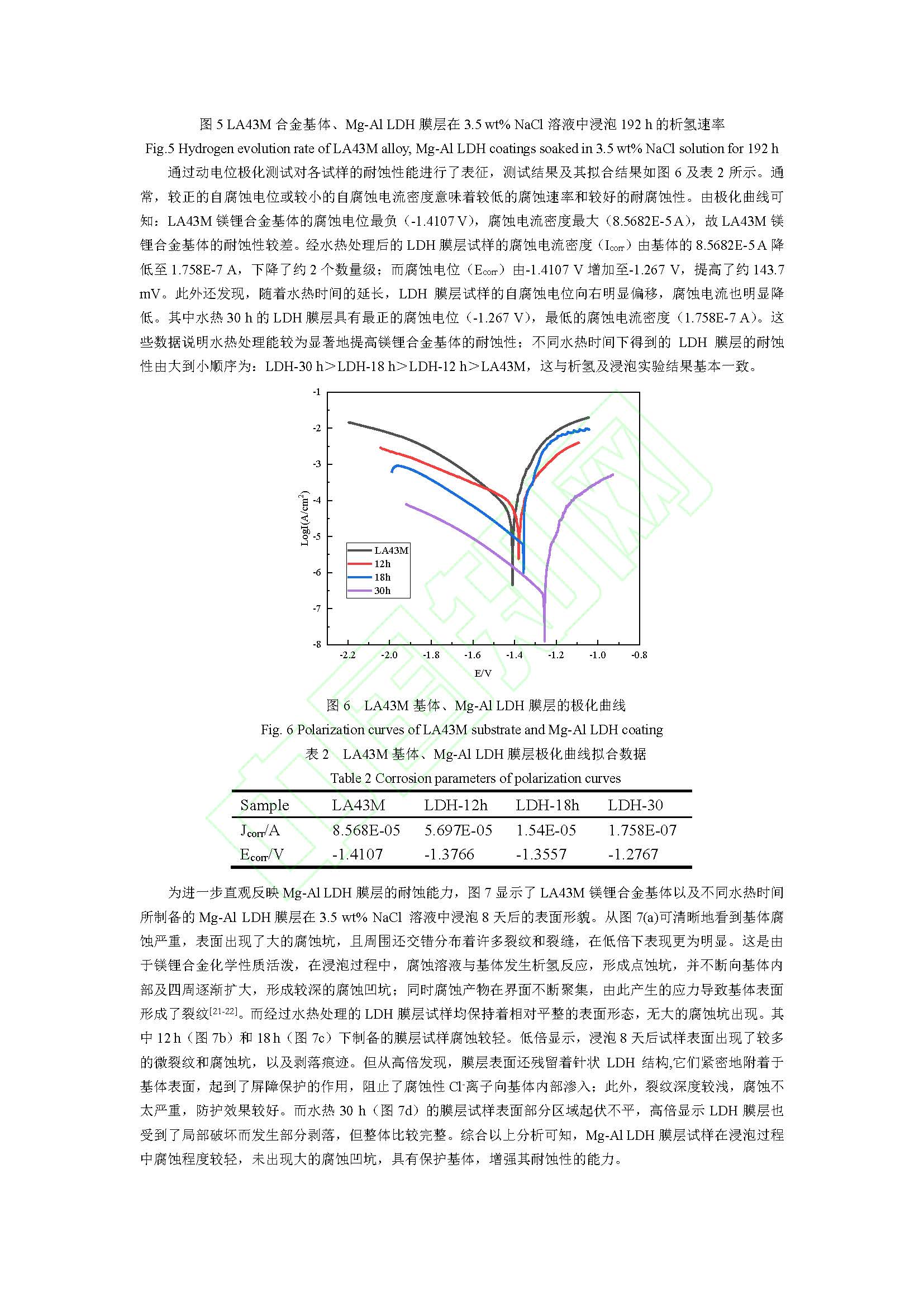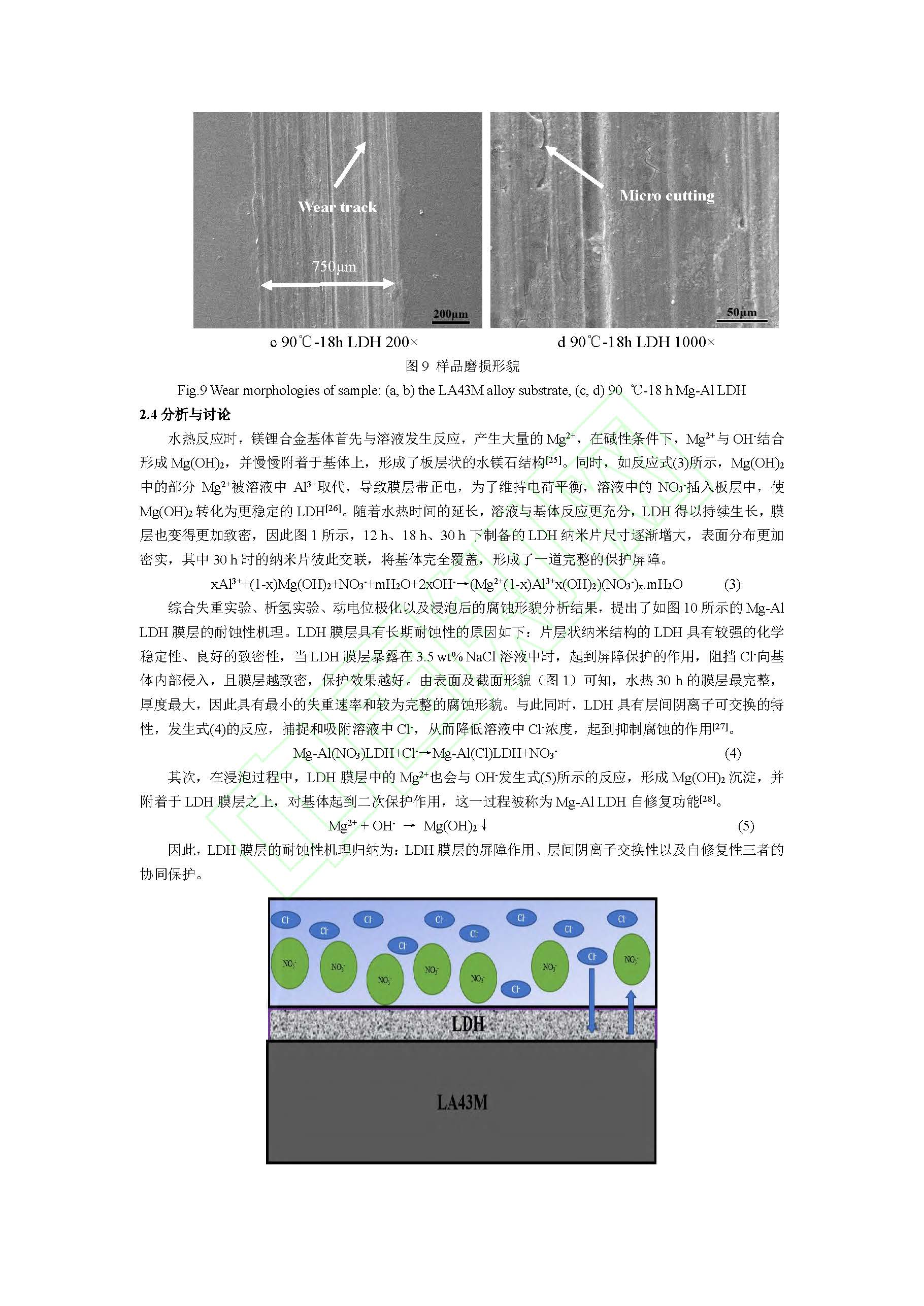 LA43M 镁锂合金表面水热合成 Mg-Al LDH 膜层的耐腐蚀及磨损性能