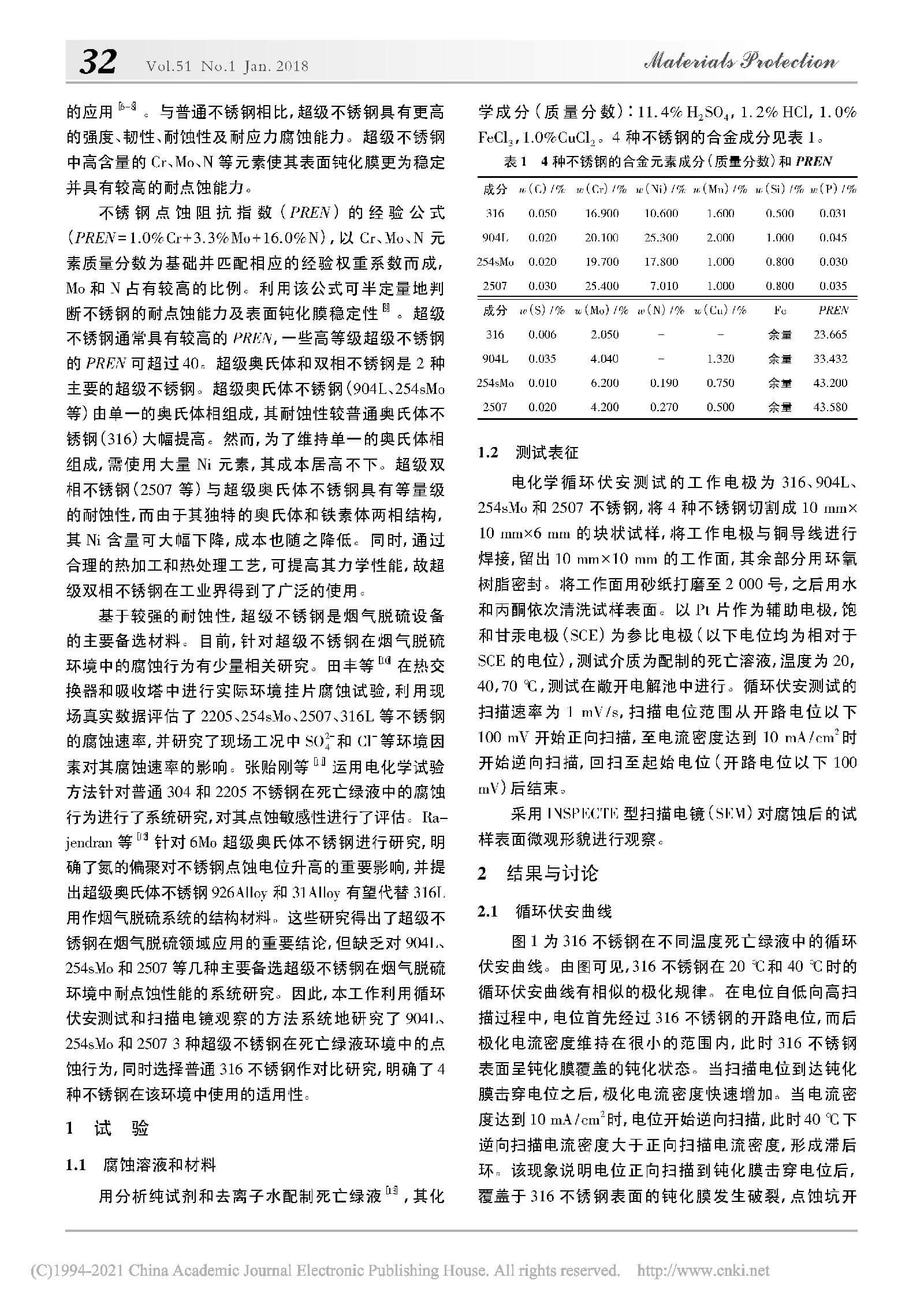 几种超级不锈钢在模拟烟气脱硫环境中的点蚀行为