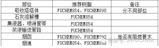 表4.1氨法FGD工艺中玻璃钢树脂选择表