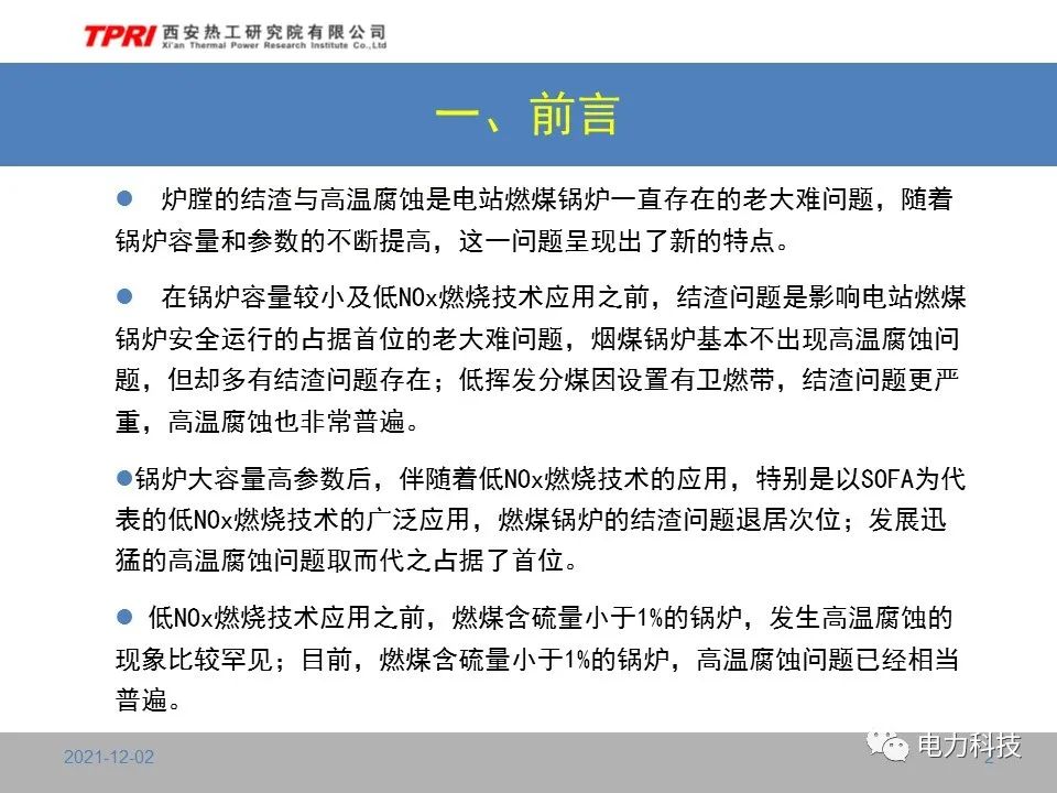 西安热工研究院有限公司的王春昌研究员从燃煤特性的影响、锅炉容量的影响、燃烧技术的影响、运行调整措施、技术改造措施以及具体实例几大方面对炉膛结渣与高温腐蚀的原因及解决措施进行了详细的阐述,干货满满,欢迎学习~