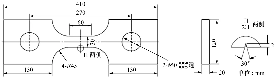 图1 大尺寸应力腐蚀试样的几何尺寸