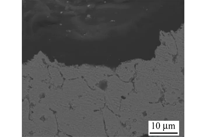 图6(a)中可见解理台阶,表明7号试样主要发生脆性断裂。图6(b)中可见断口附近的晶粒并没有被明显拉长,表明试样的塑性变形不明显,这进一步说明试样发生了穿晶脆性断裂,呈现典型的应力腐蚀裂纹特征。其他条件下试样的断口形貌与7号试样类似,这说明本试验达到了加速腐蚀开裂与降低变形量的目的。