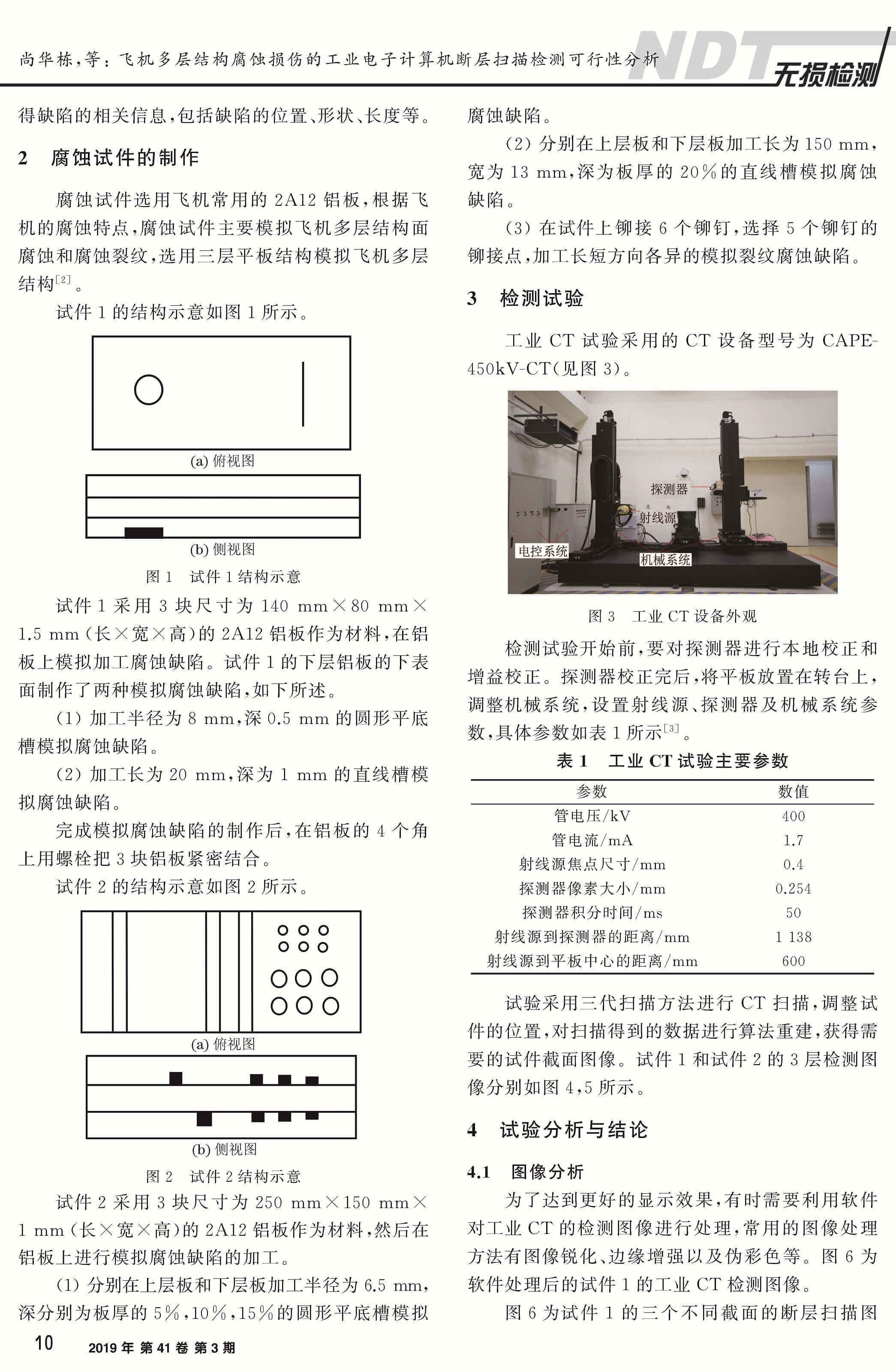 飞机多层结构腐蚀损伤的工业电子计算机断层扫描检测可行性分析
