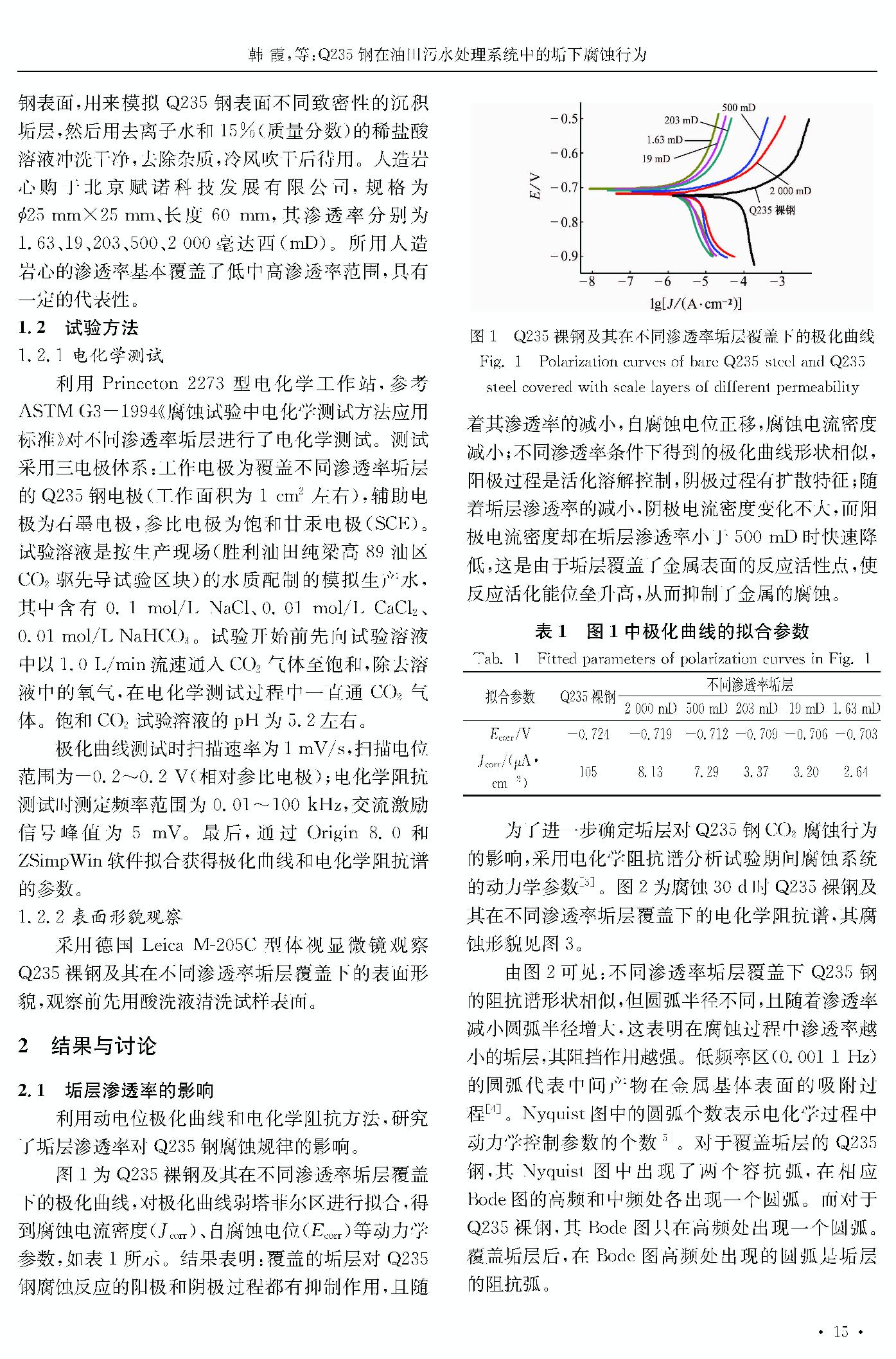 Q235钢在油田污水处理系统中的垢下腐蚀行为