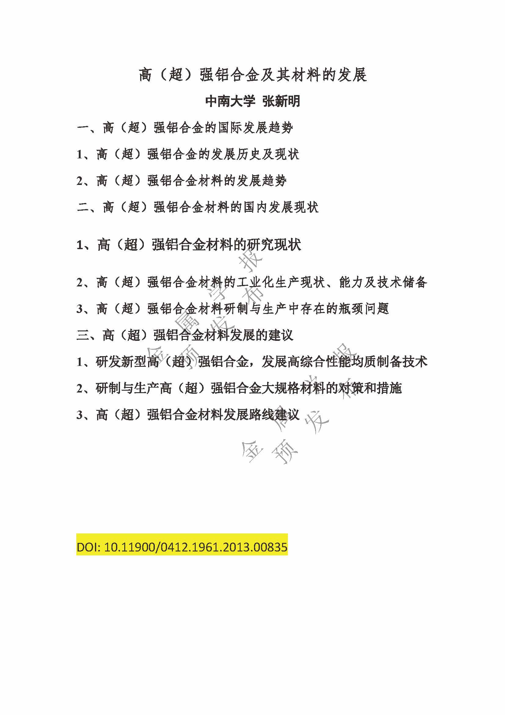 高(超)强铝合金及其材料的发展