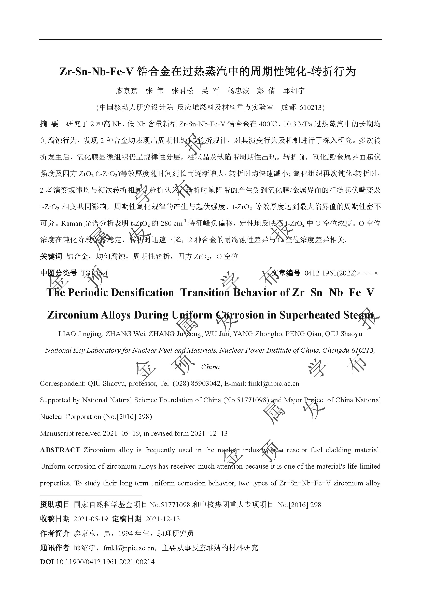 2022-04-02 14:36:07 作者:廖京京,张伟,张君松,吴军,杨忠波,彭倩,邱绍宇 来源:金属学报 分享至: