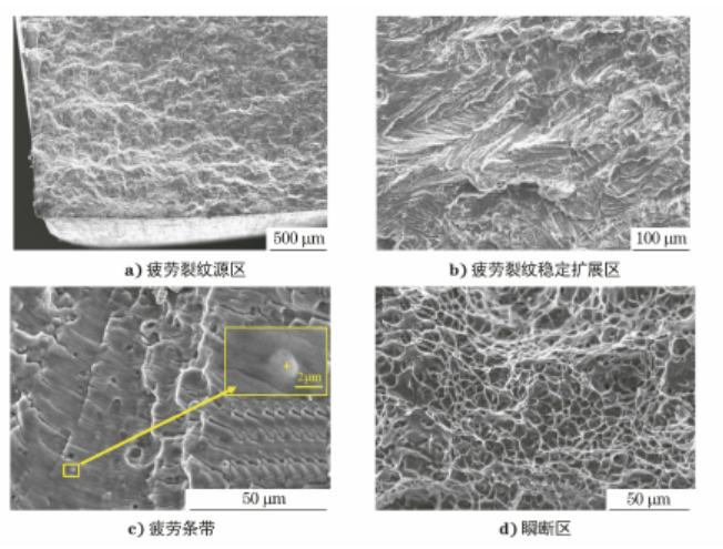 拉伸及疲劳试验结束后,立即在干燥环境下采用扫描电子显微镜(SEM)观察疲劳断口,避免断口氧化带来的影响。