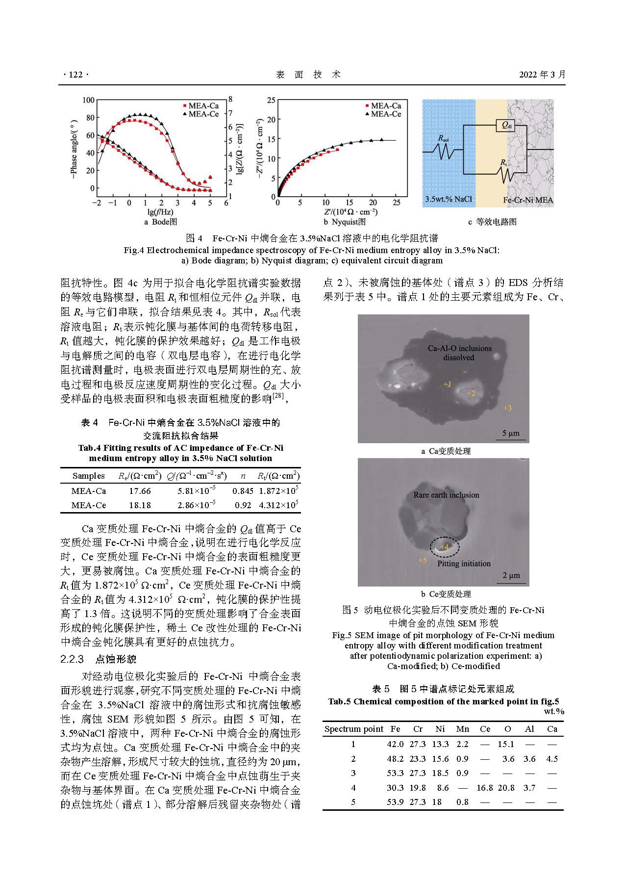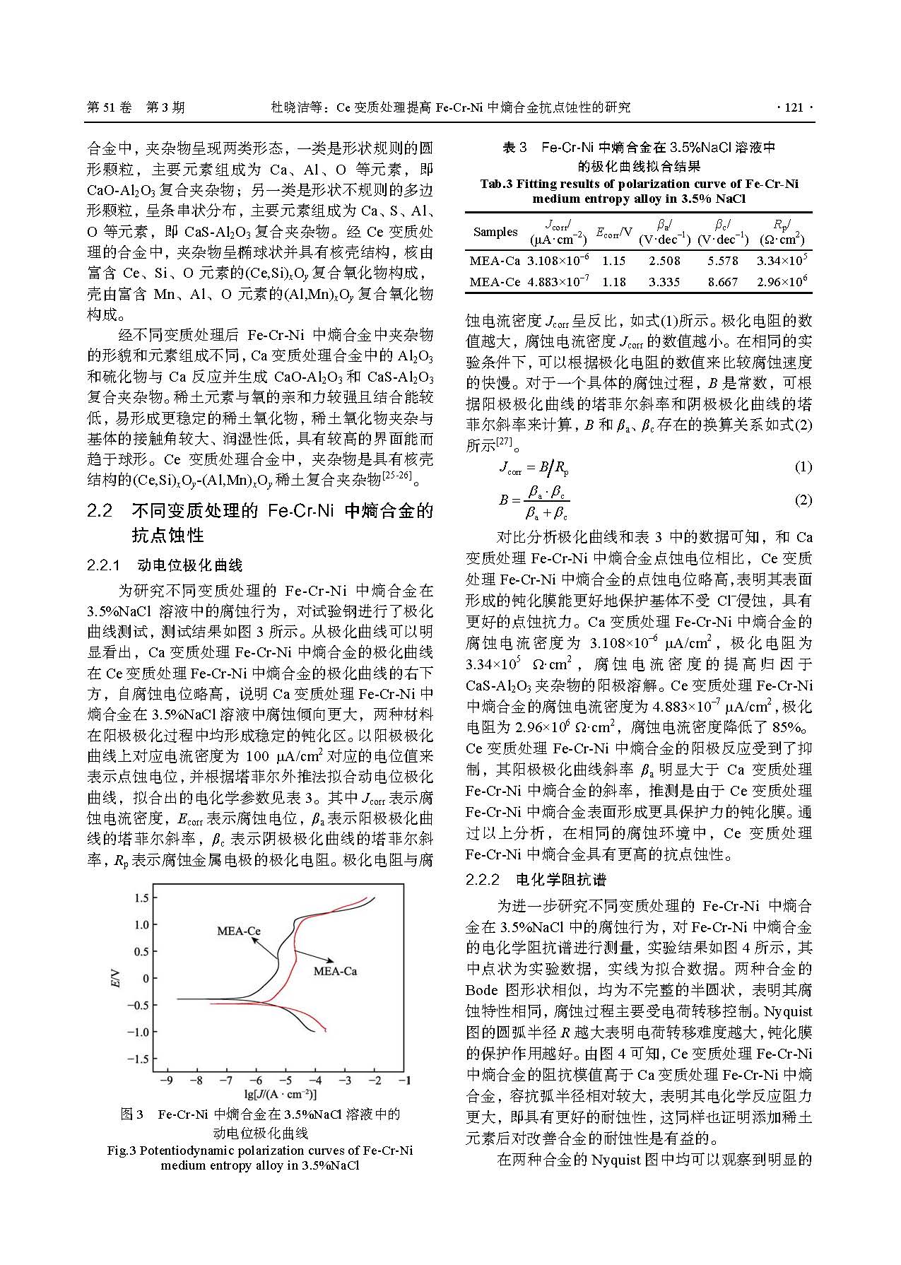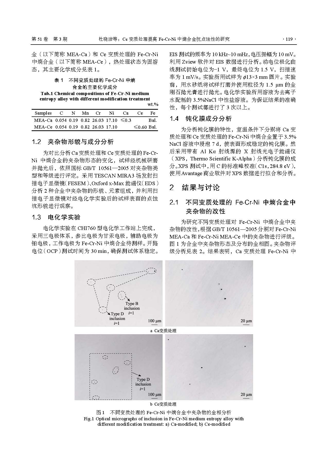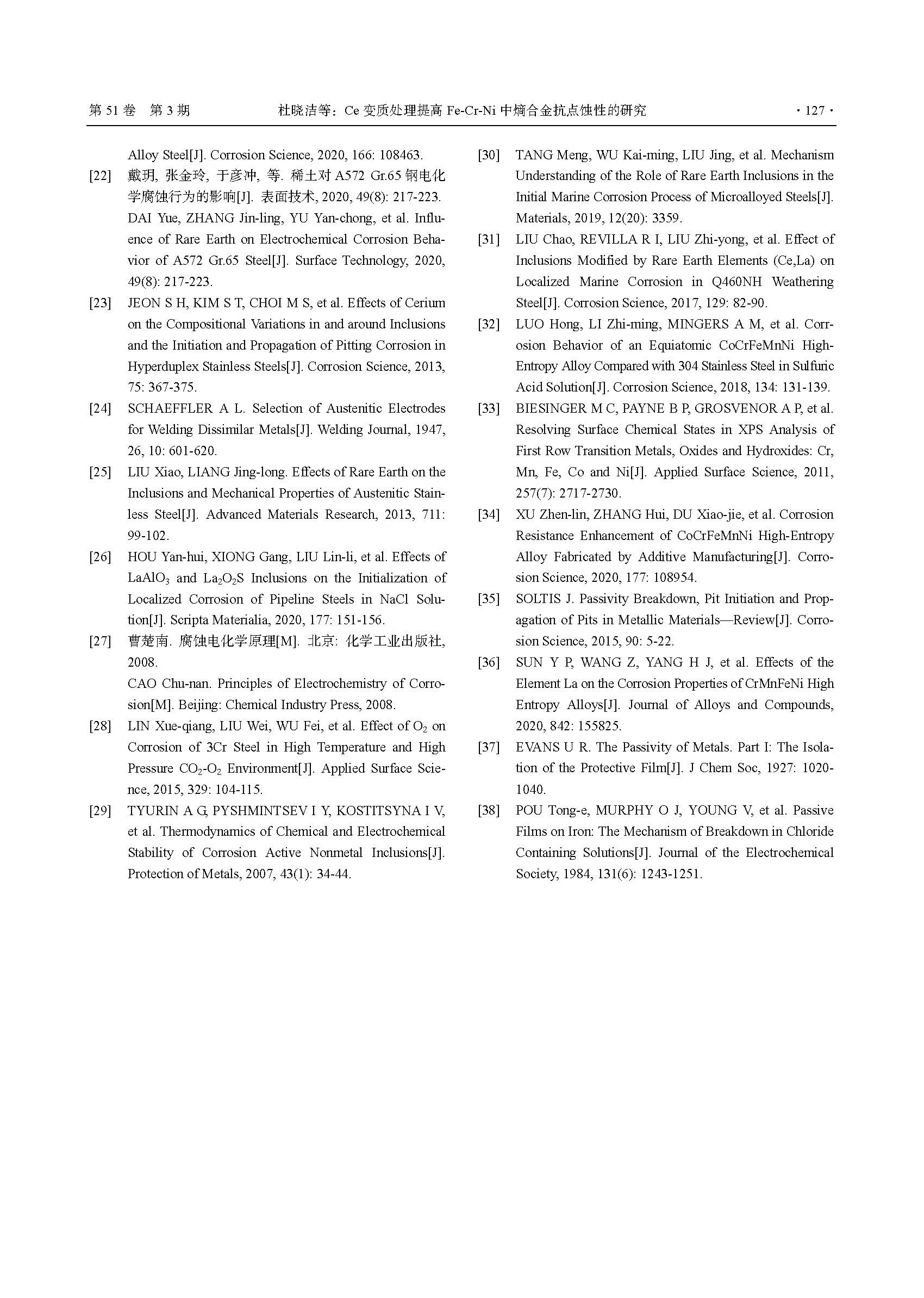 标签: 稀土 Ce, Fe-Cr-Ni 中熵合金, 点蚀, 夹杂物