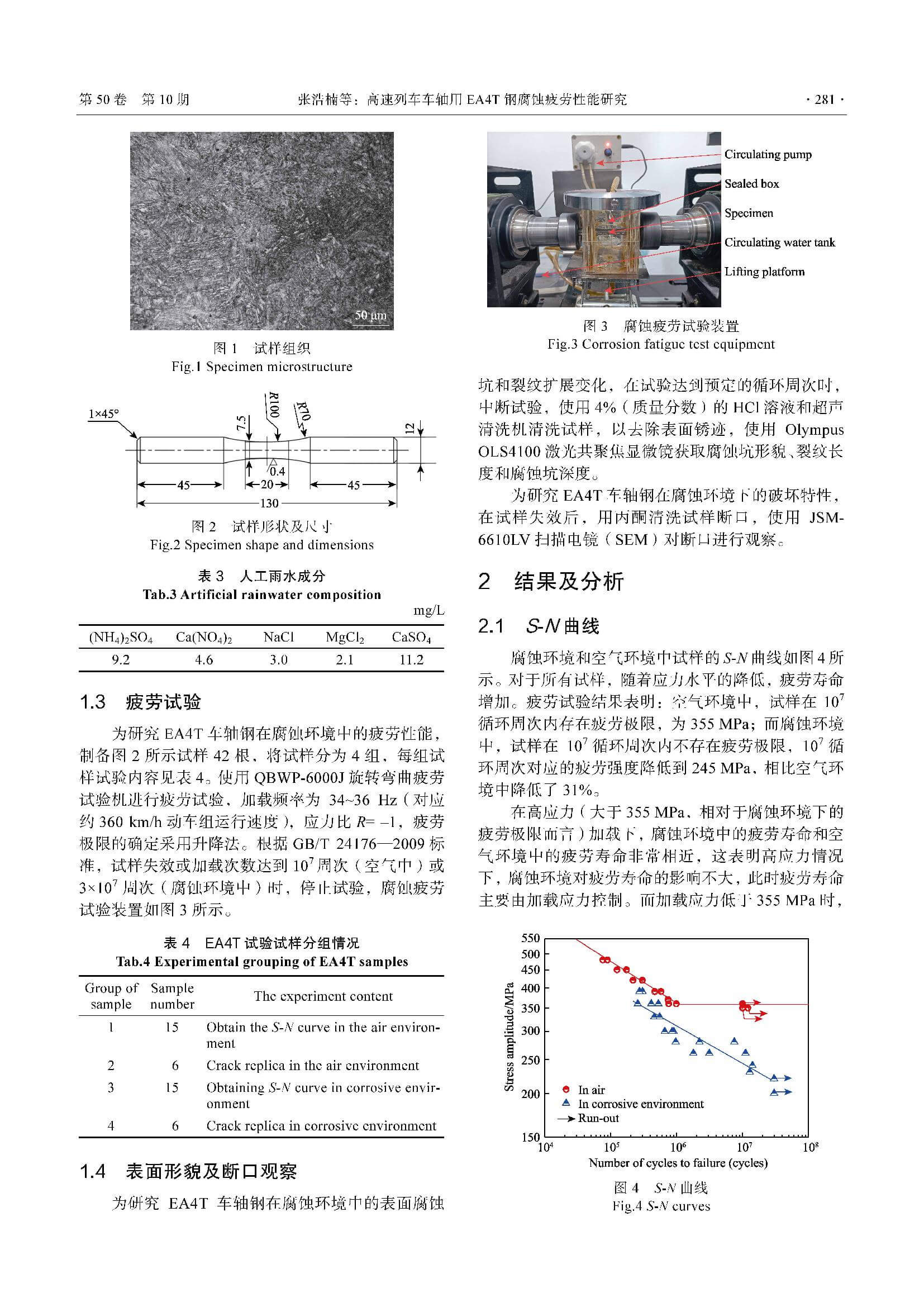 高速列车车轴用EA4T钢腐蚀疲劳性能研究