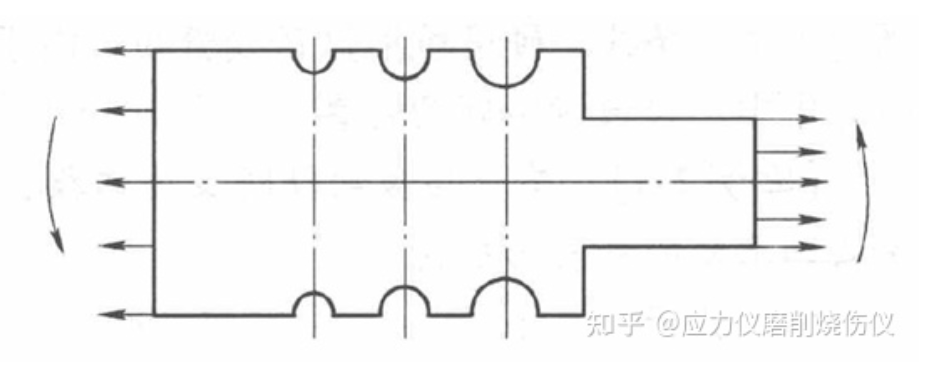 同样,在应力集中区附近的低应力部位,加开卸载槽(图),也可改善应力集中情况。