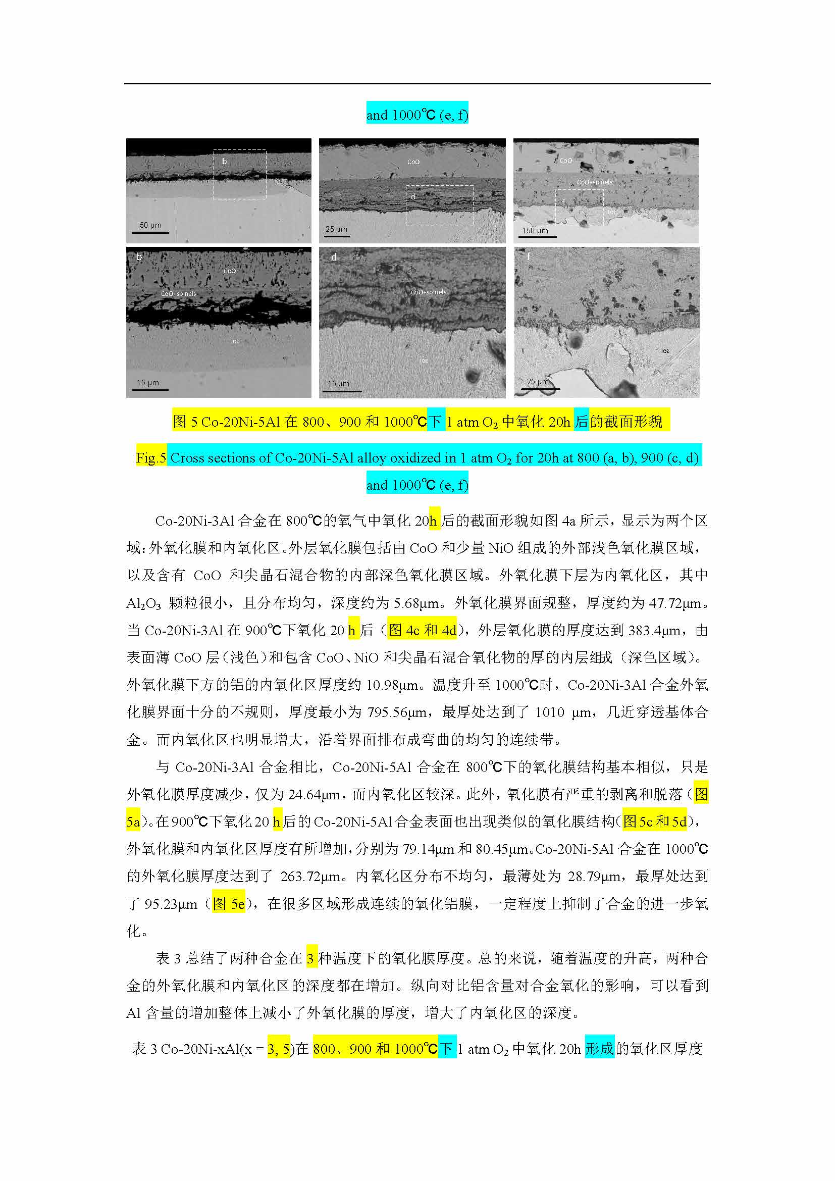 三元Co-Ni-Al合金在800-1000℃纯氧中的氧化行为研究