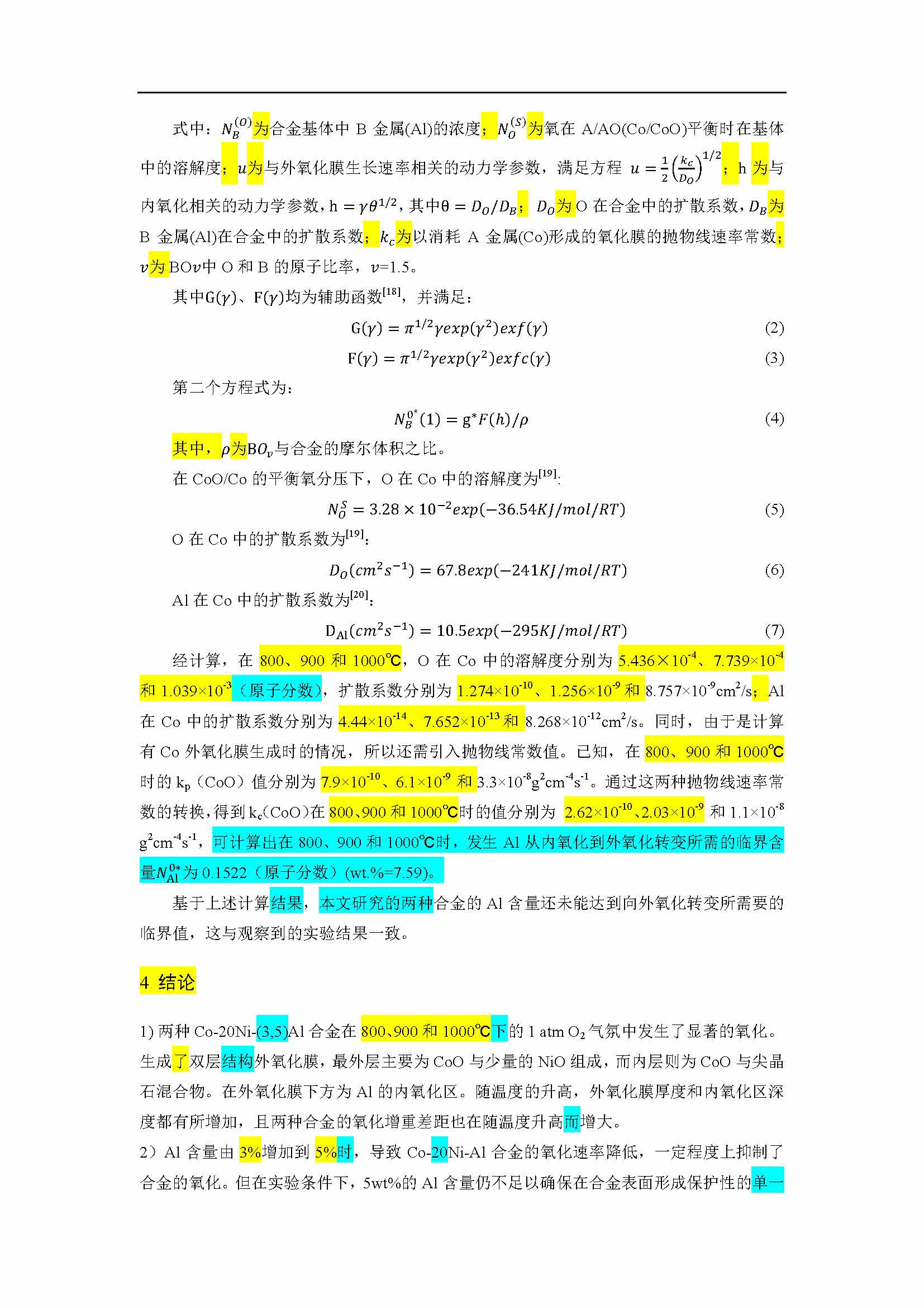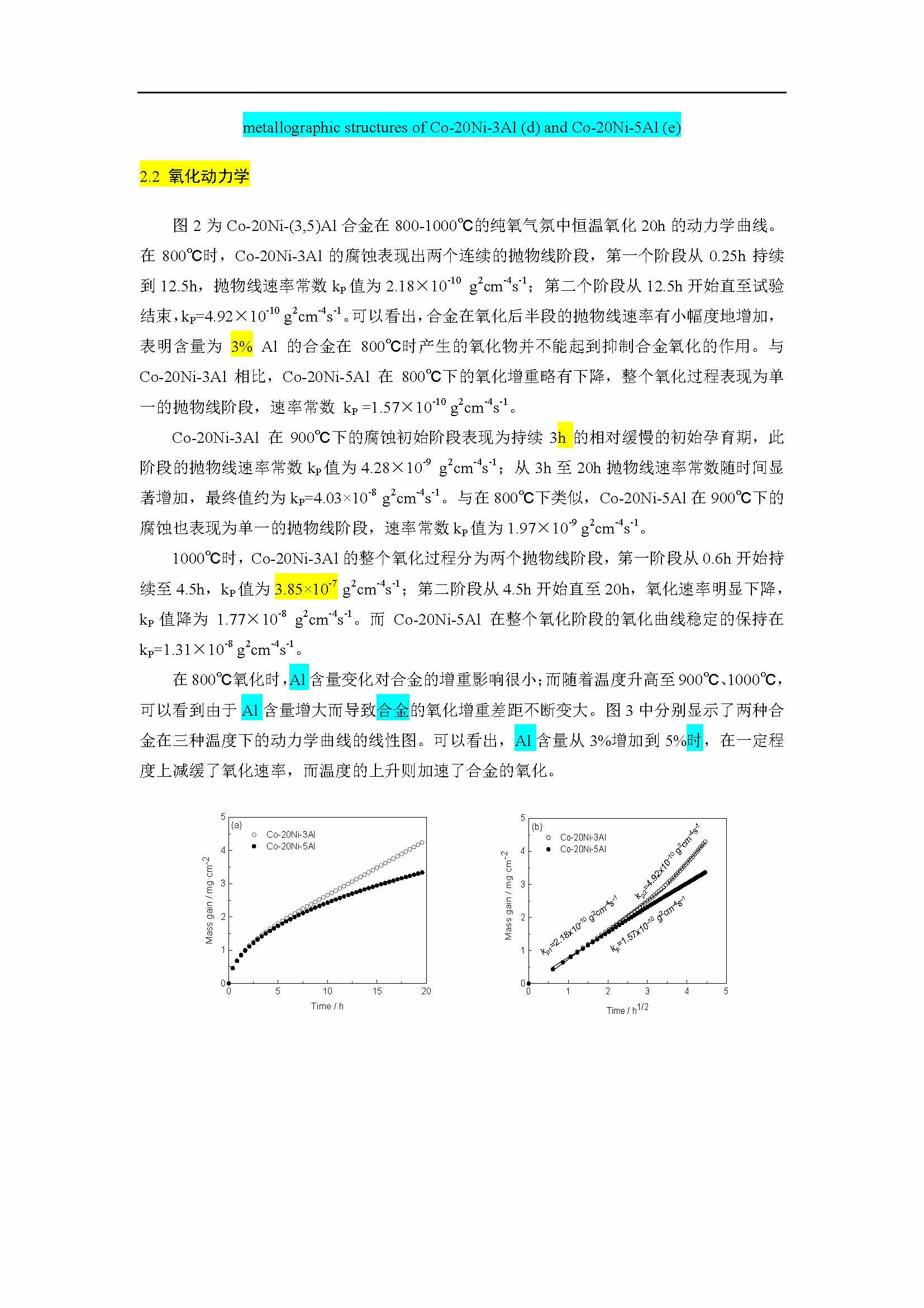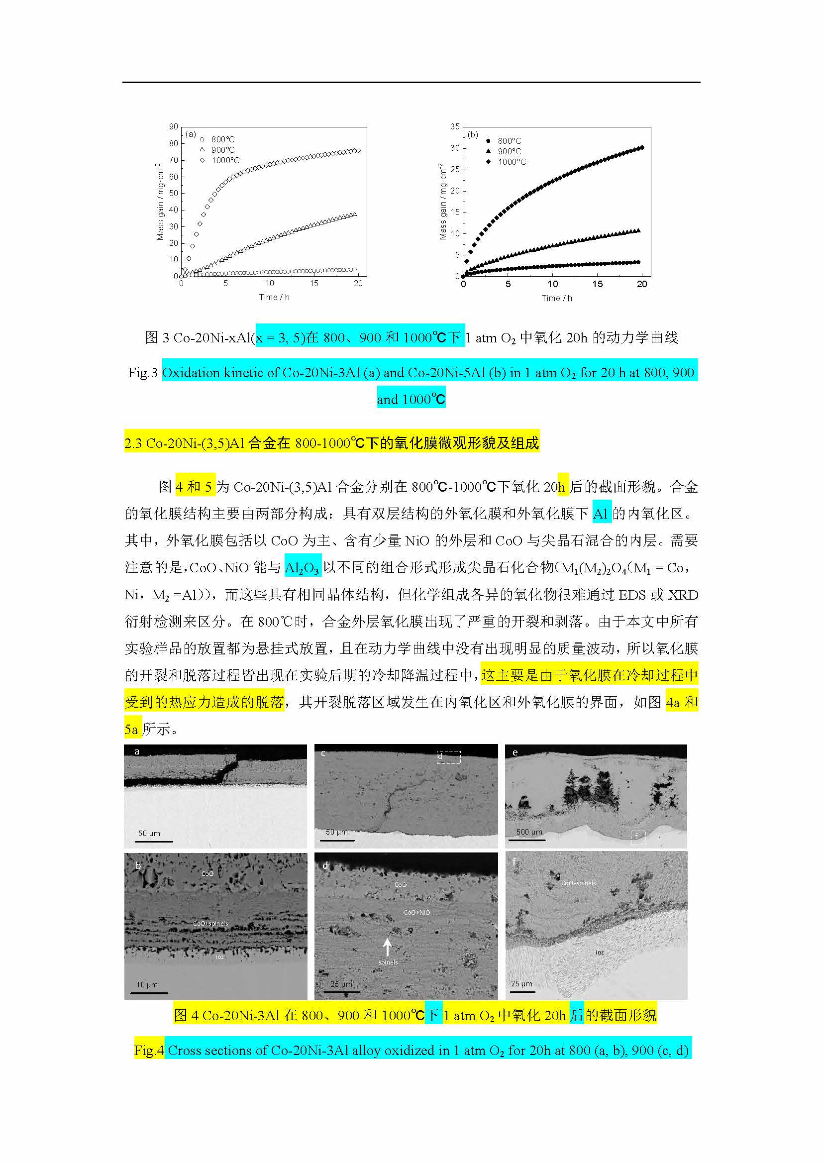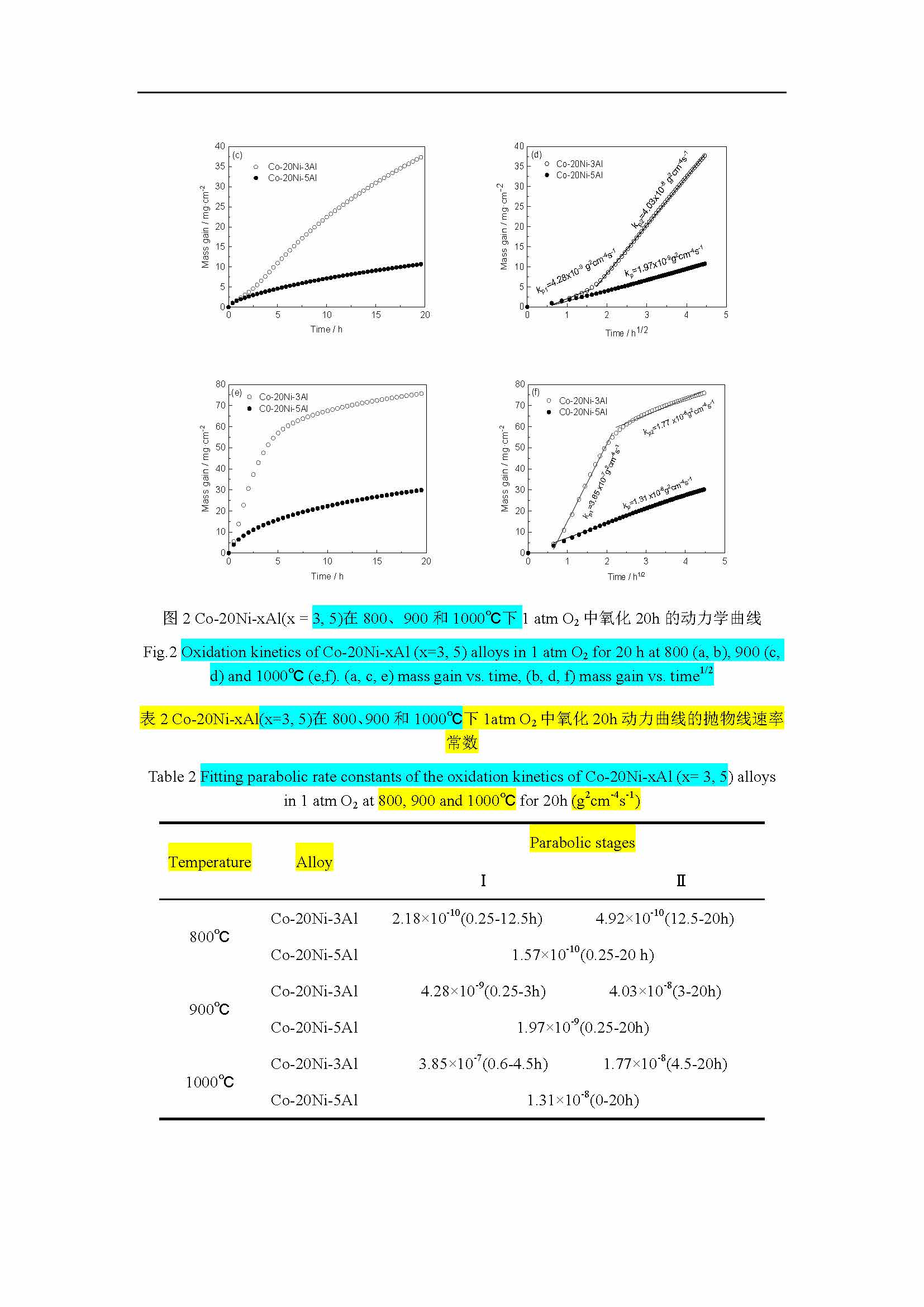 标签: Co-Ni-Al合金, 高温氧化, 氧化动力学, 保护性氧化膜