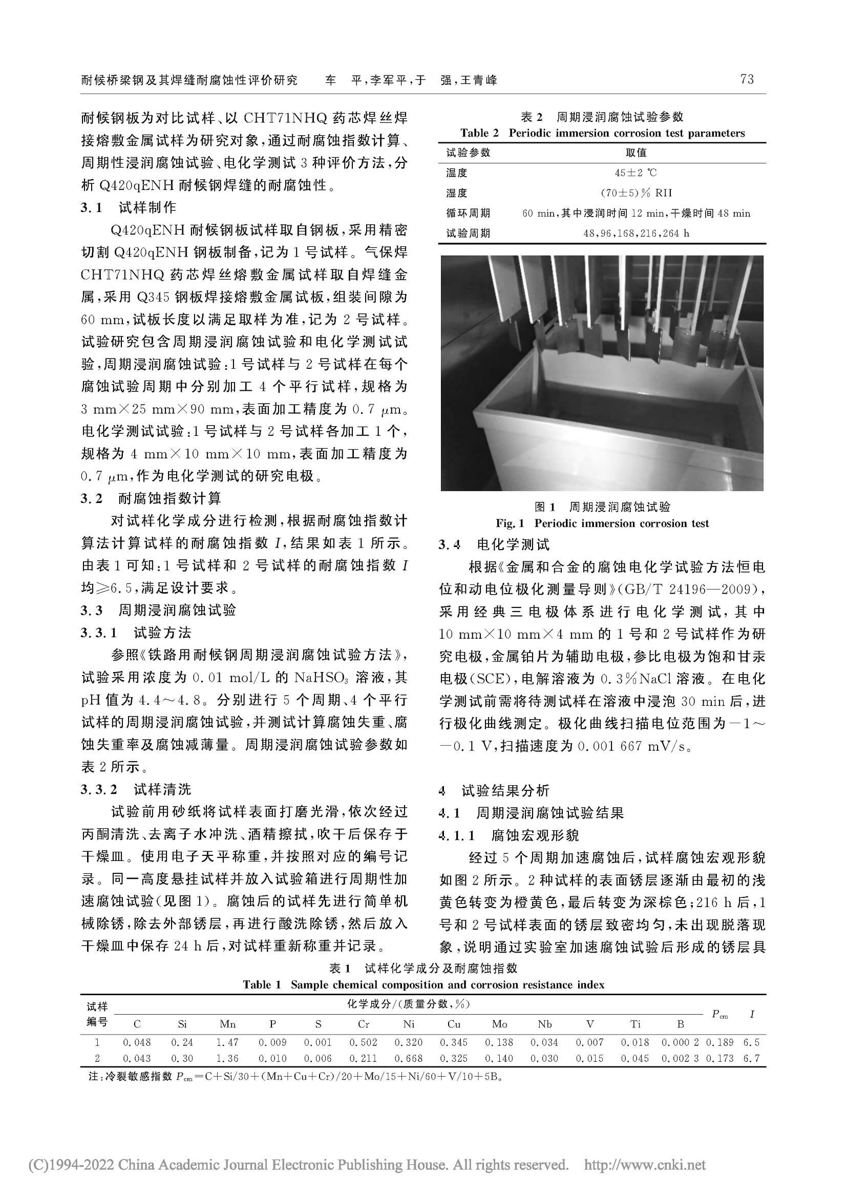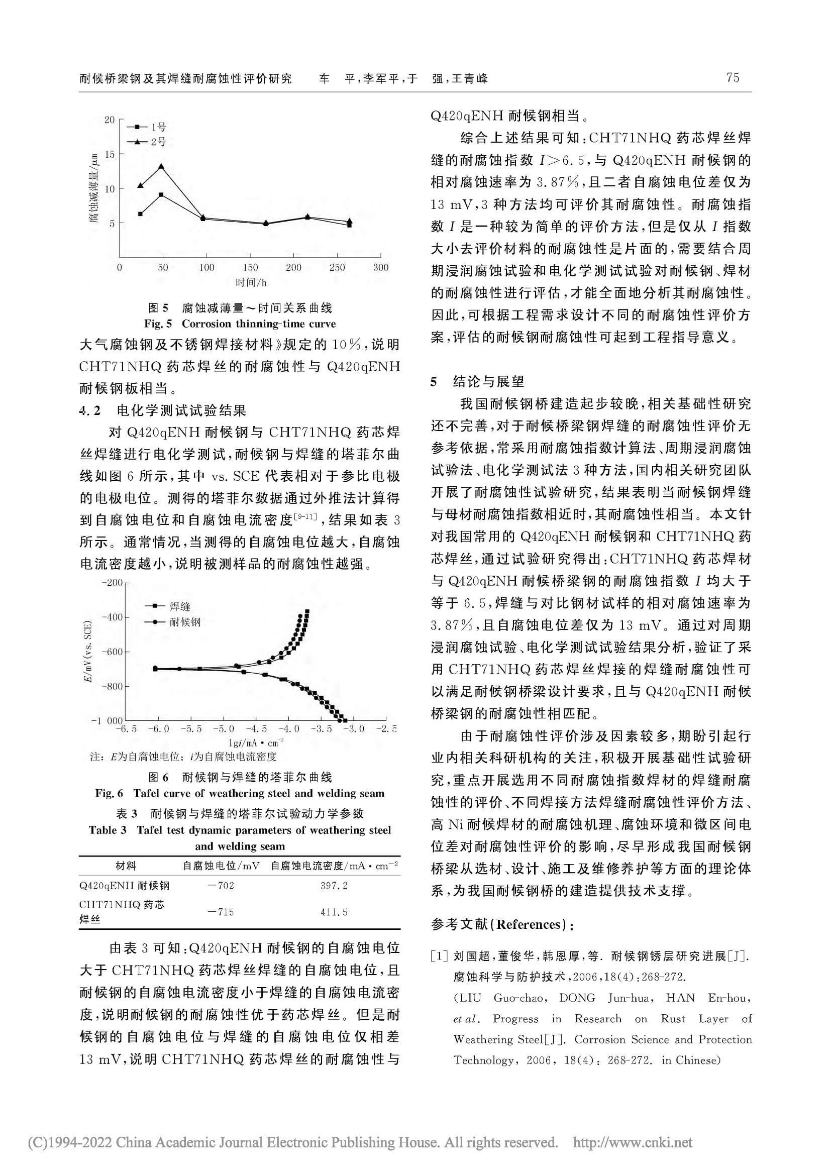 标签: 耐候钢桥, 耐候桥梁钢, 耐腐蚀指数, 周期浸润腐蚀试验, 电化学测试, 焊缝, Q420qENH 耐候钢板, CHT71NHQ药芯焊丝