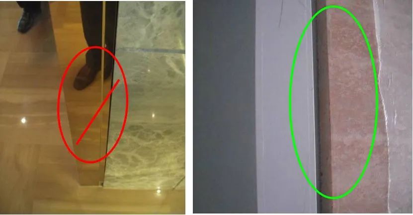 1、不锈钢饰面与石材平接收口,缝隙宽度不均匀,不能密拼。