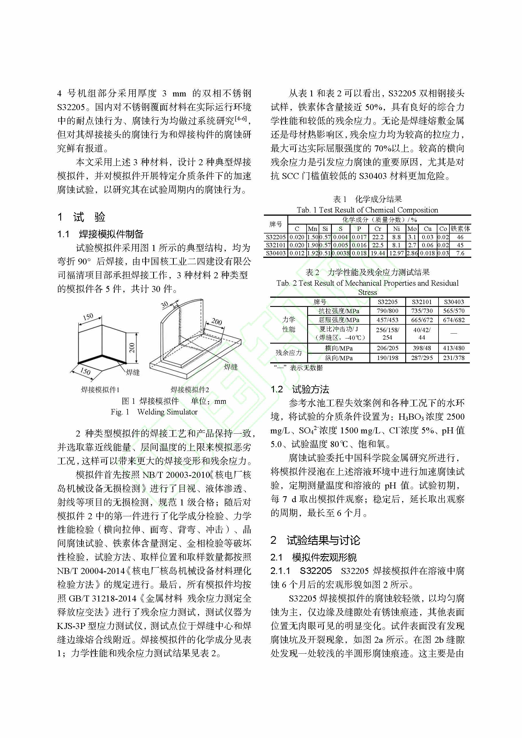核电厂不锈钢覆面焊接模拟件腐蚀行为研究