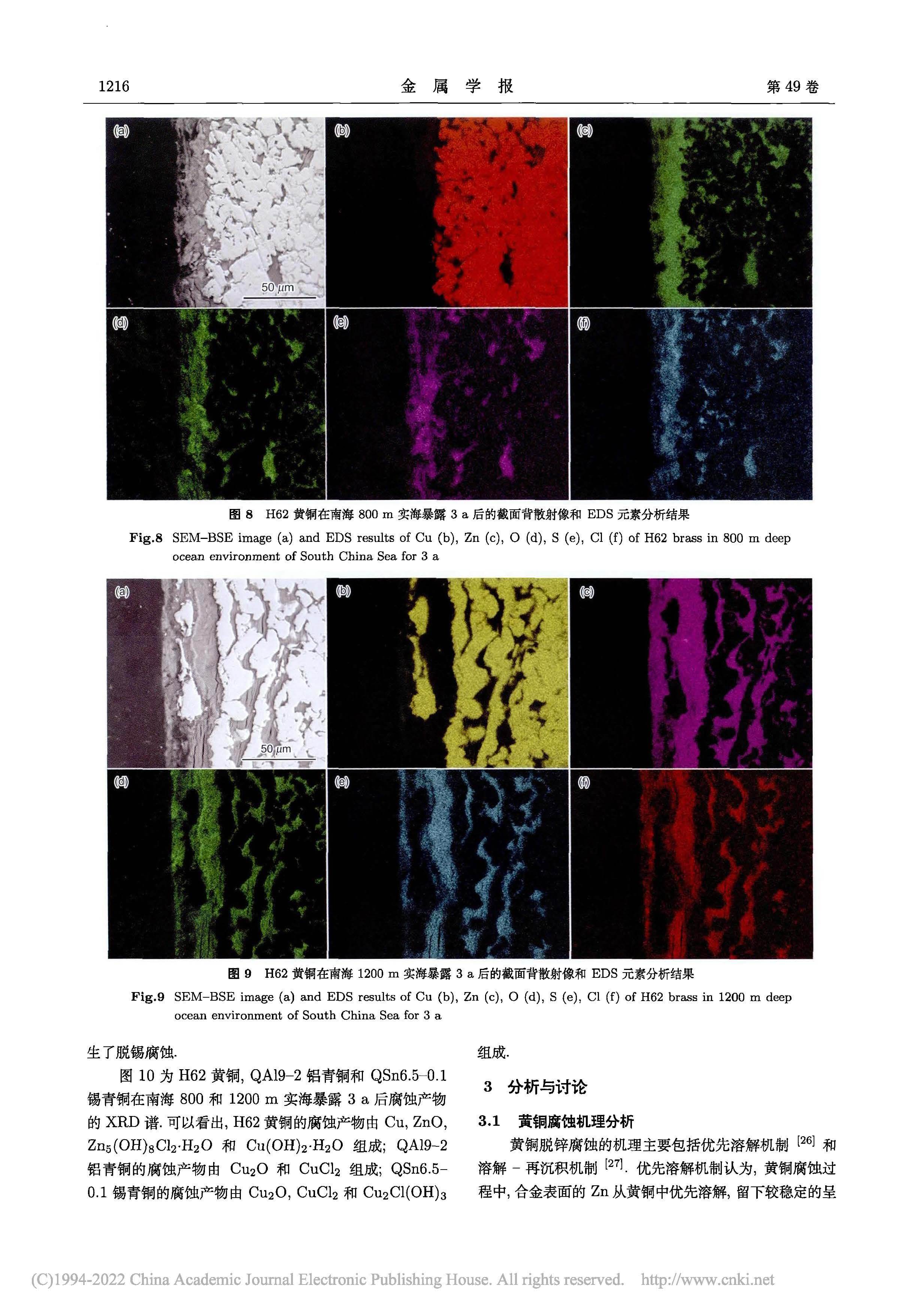 铜合金在中国南海深海环境下的腐蚀行为研究