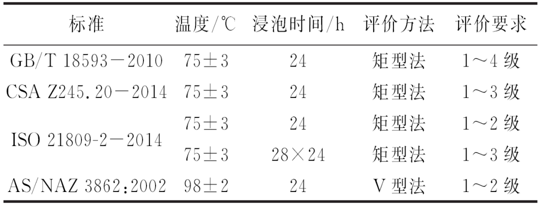 表3 不同标准中关于涂层热水煮浸泡法的要求