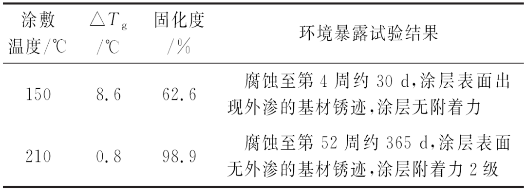 表2 不同涂敷温度下制得涂层的热分析结果和环境暴露试验结果