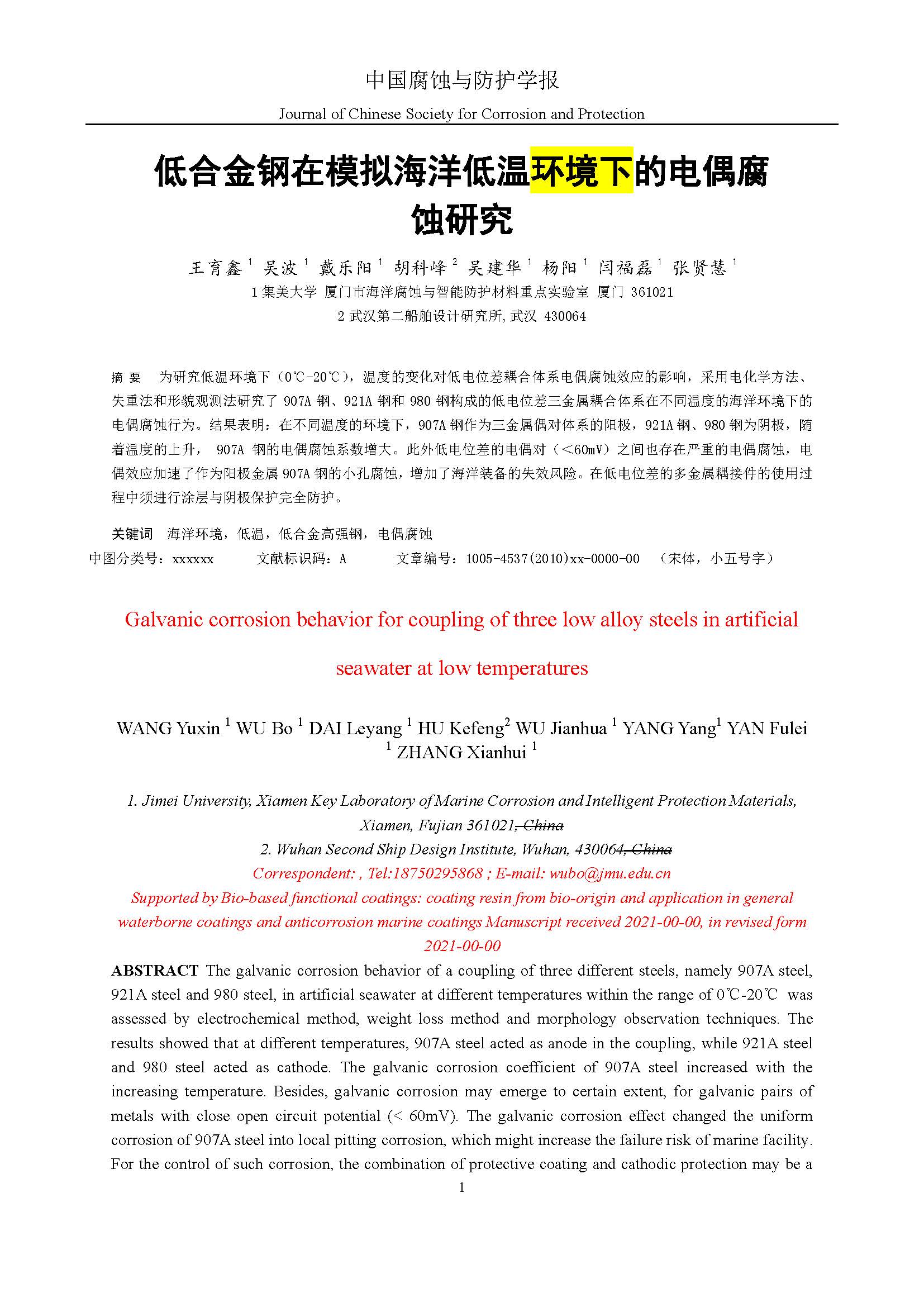 低合金钢在模拟海洋低温环境下的电偶腐蚀研究