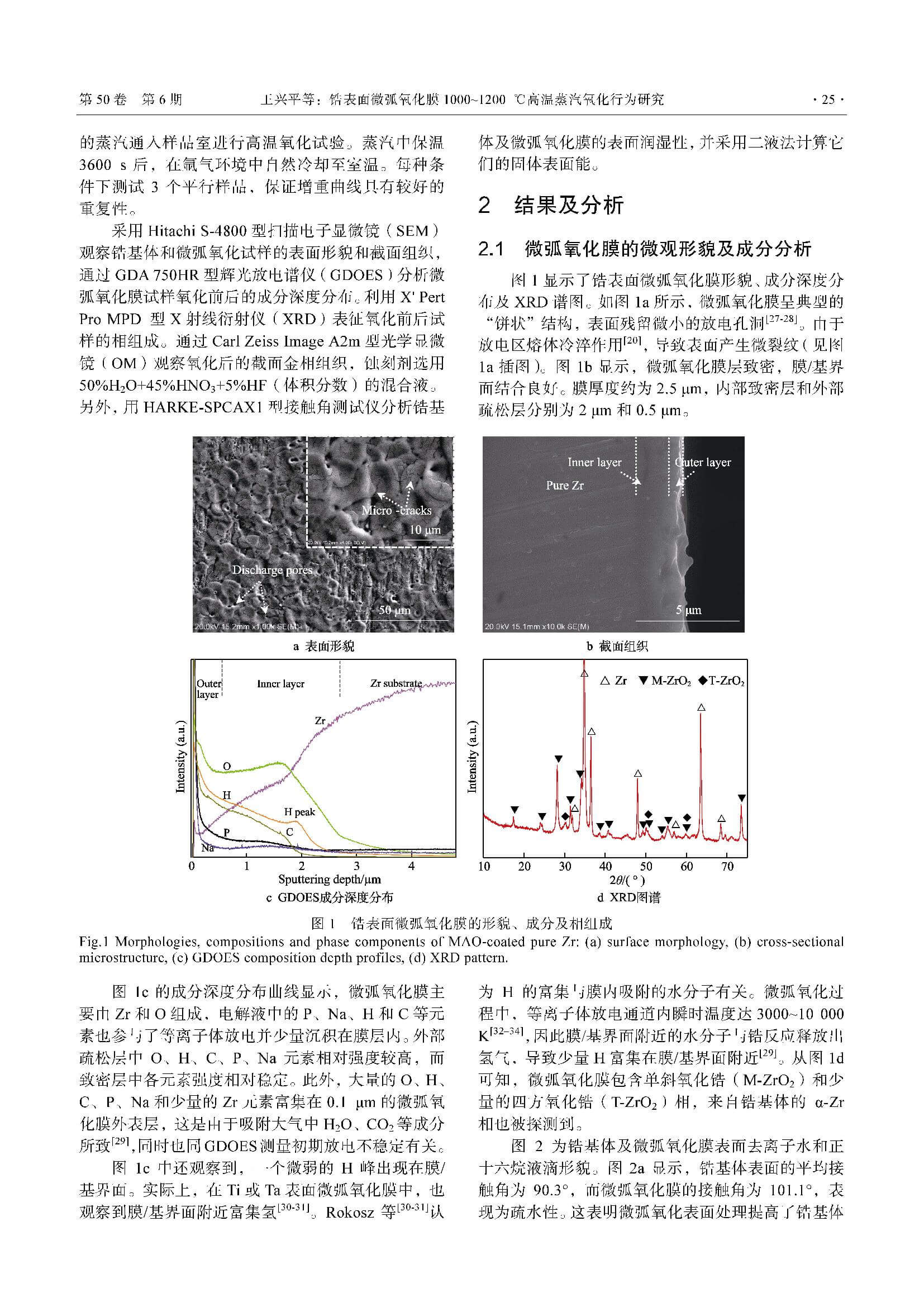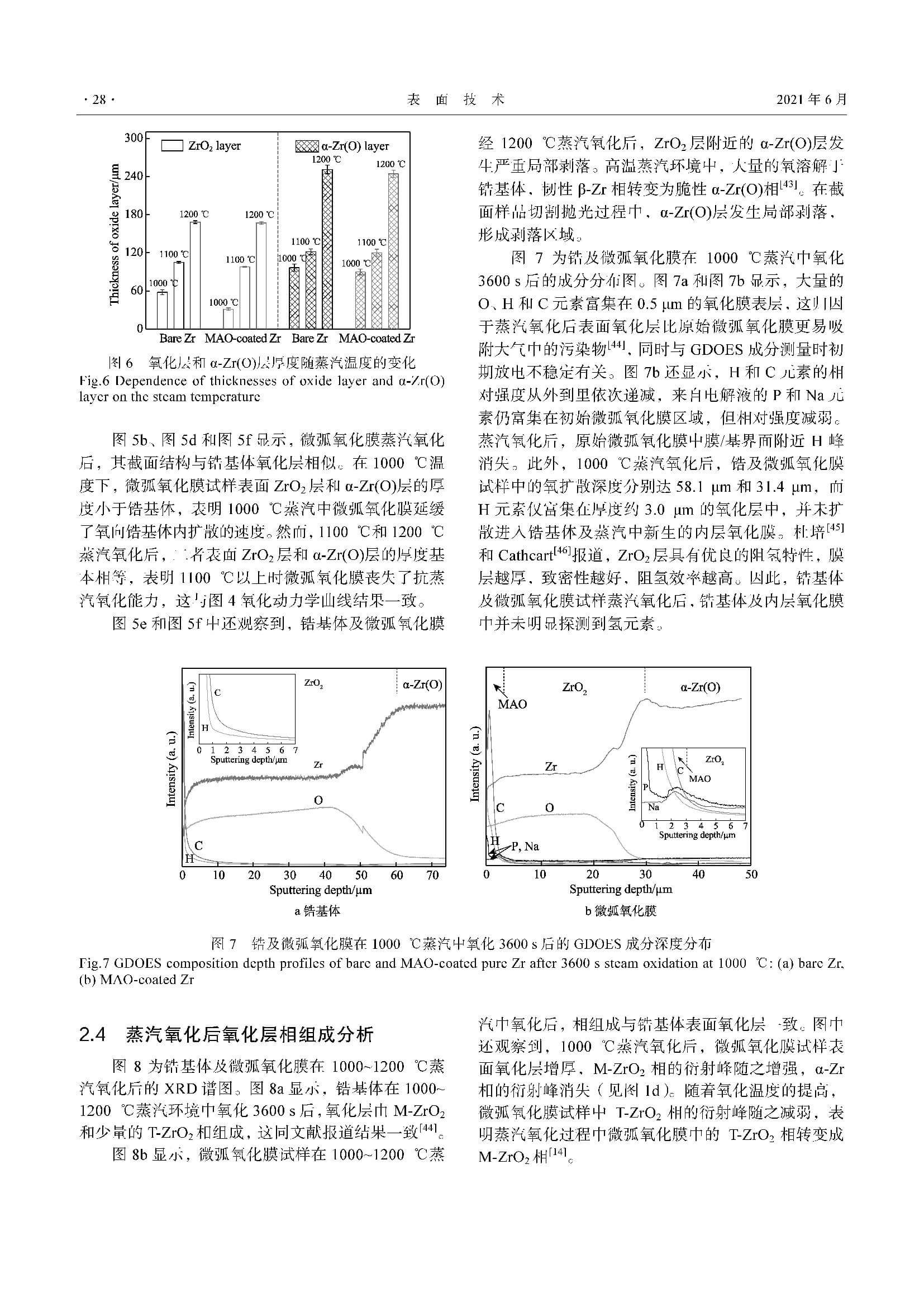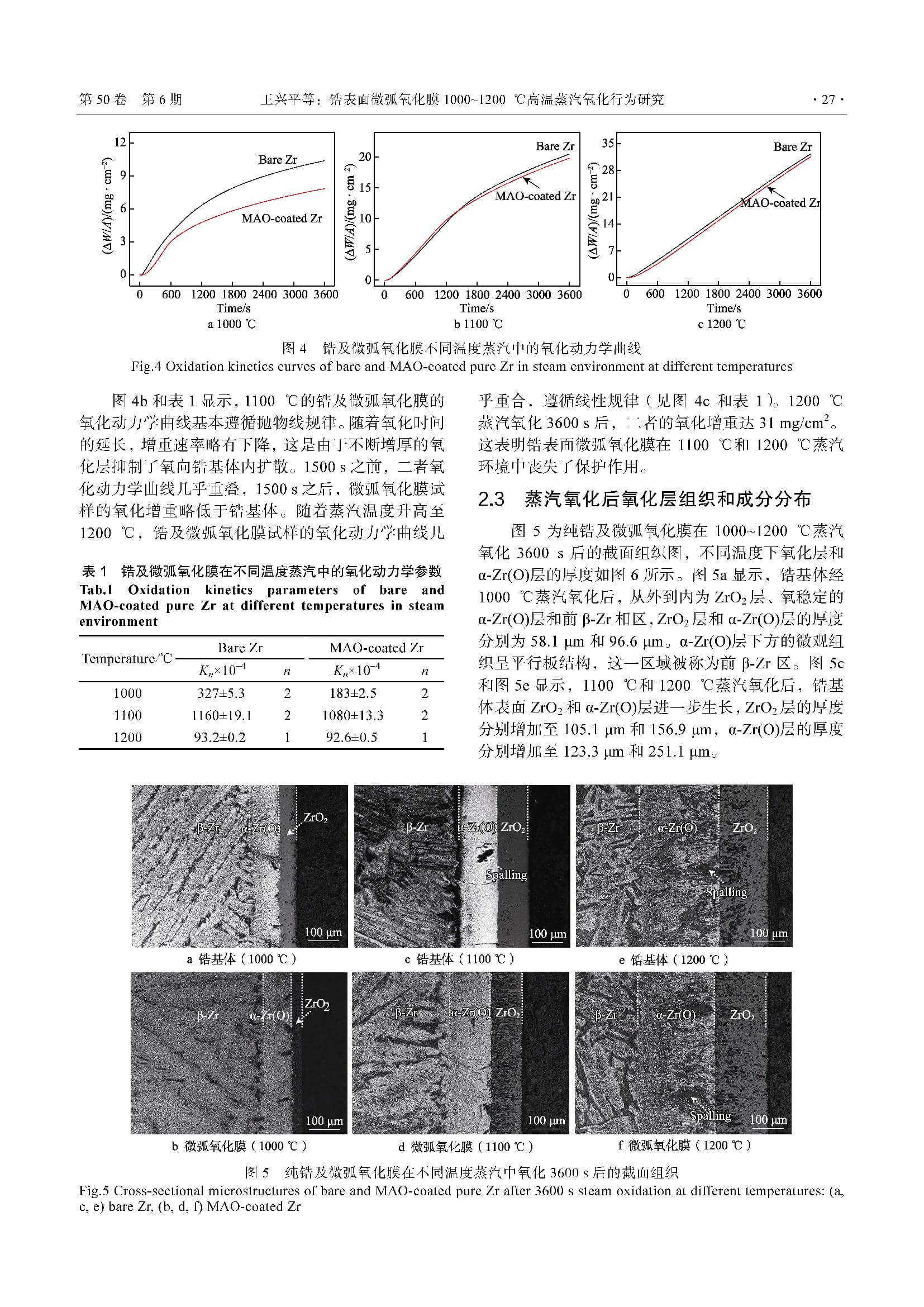 锆表面微弧氧化膜1000~1200 ℃高温蒸汽氧化行为研究