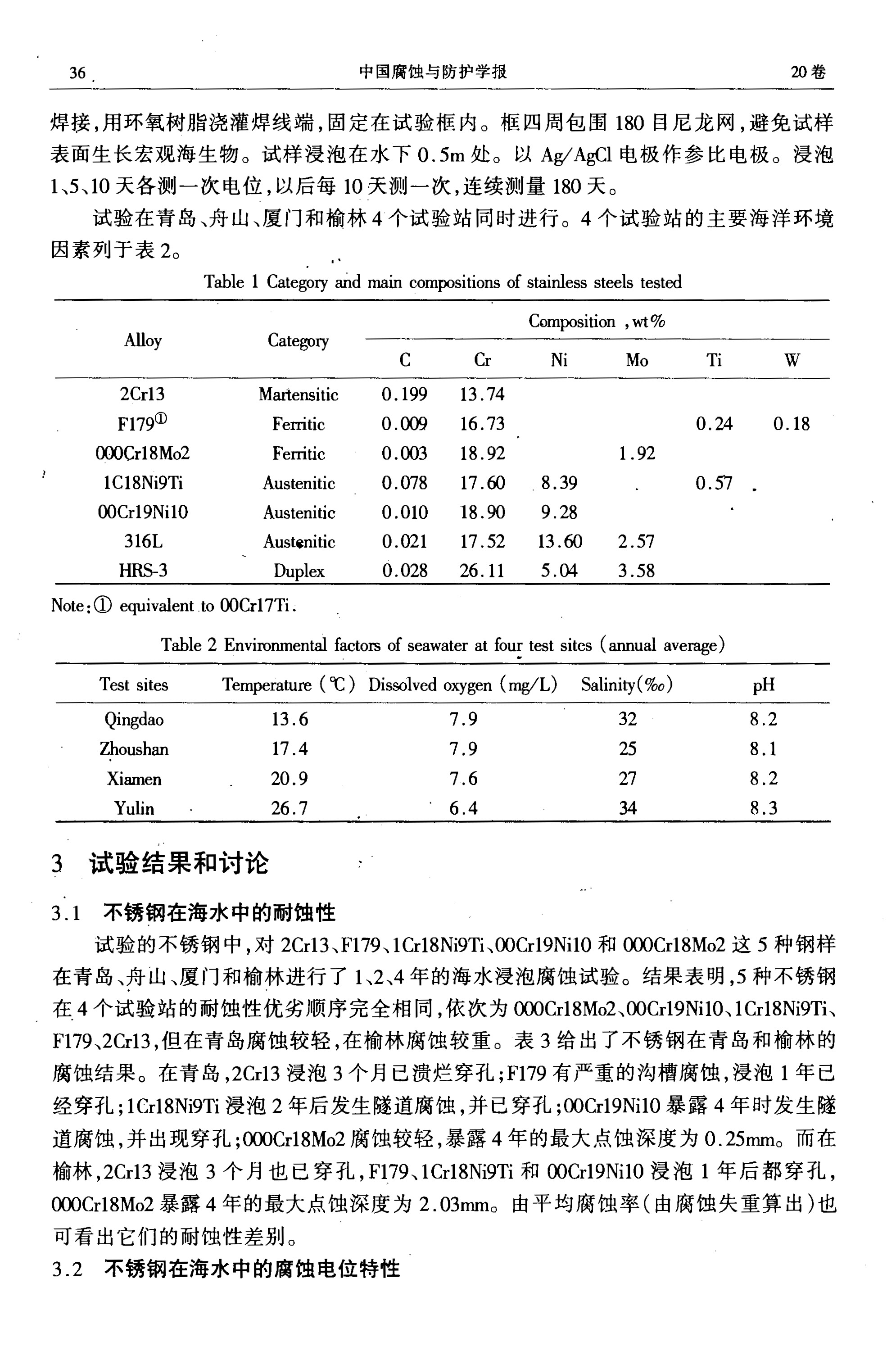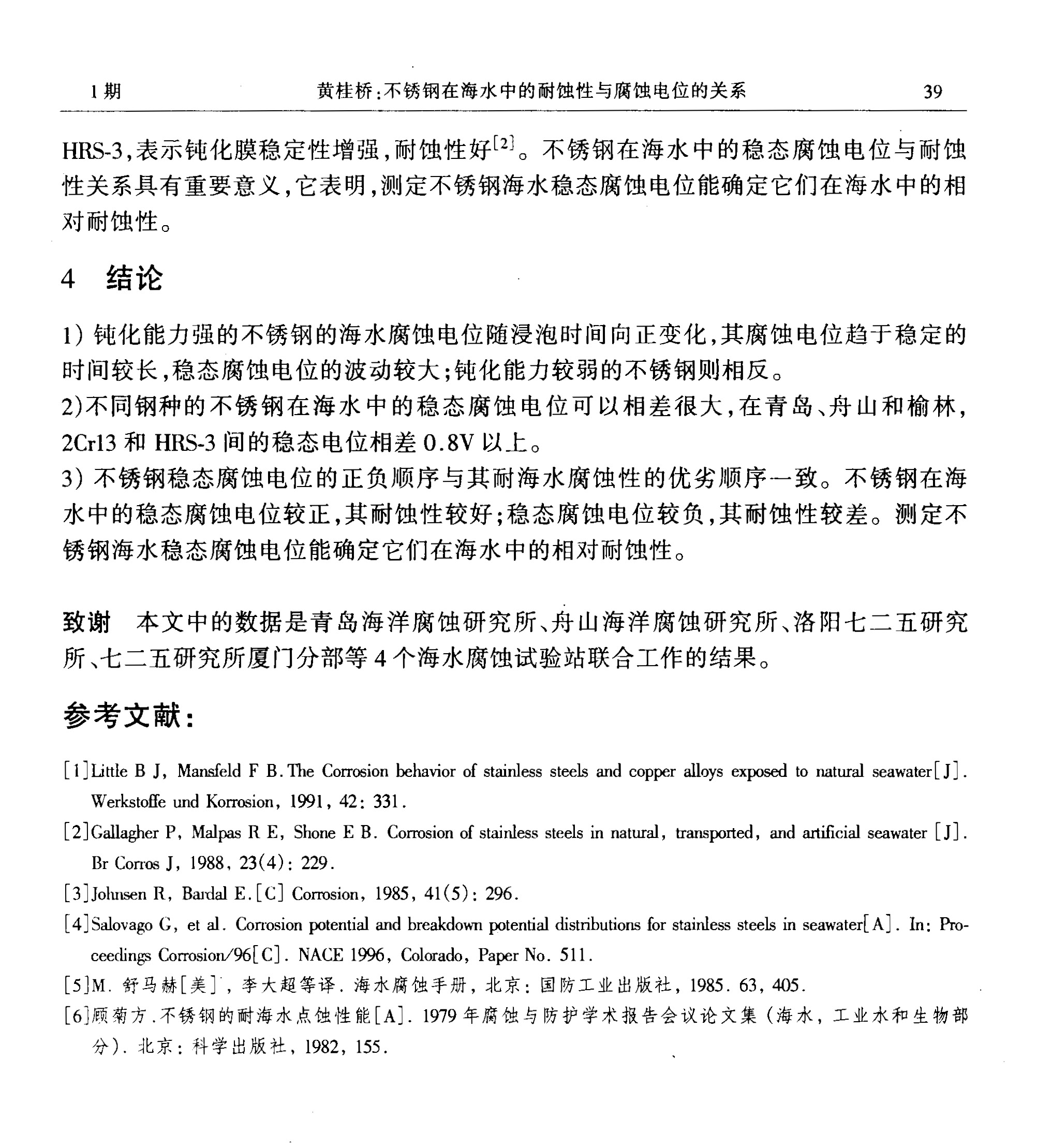 不锈钢在海水中的耐蚀性与腐蚀电位的关系