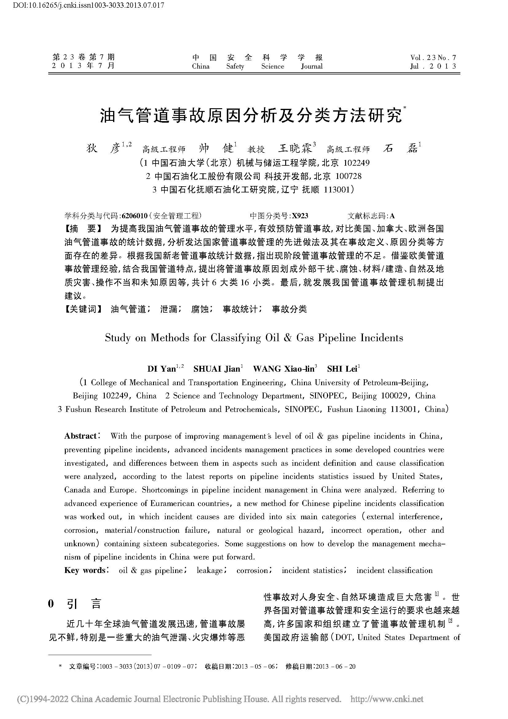 油气管道事故原因分析及分类方法研究