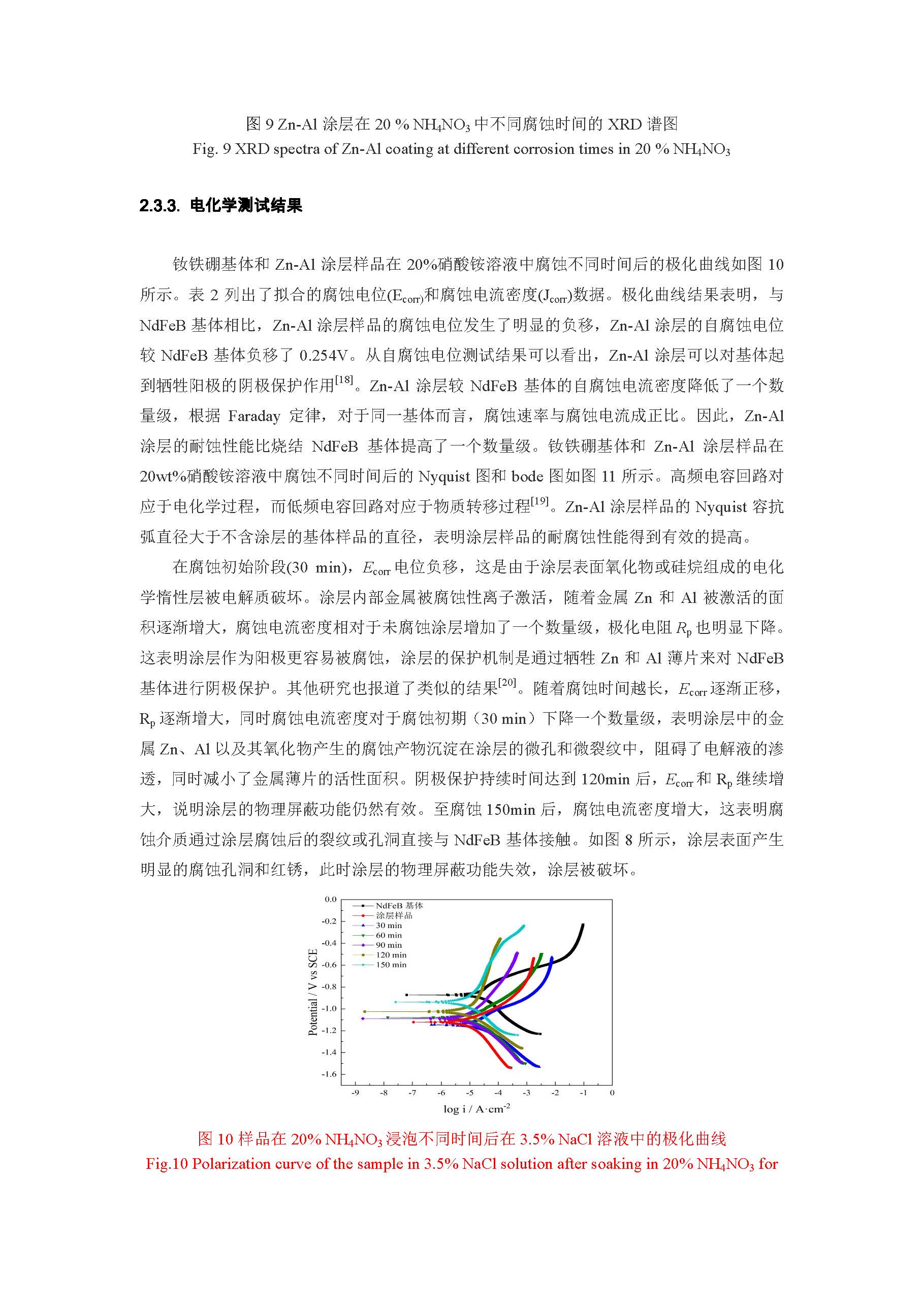 烧结 NdFeB 表面 Zn-Al 涂层制备及耐腐蚀机理研究