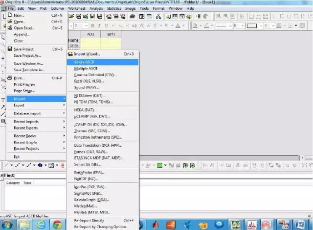 Step1:导入精修后的数据,做过精修后,都会产生一个prf文件,用origin直接导入