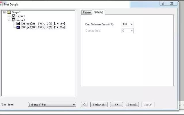 Step1:首先设置,双击这个曲线,线的样式改为column/bar.接着修改颜色为绿色,Bragg position 一般为绿色实线,较细,建议0.2 (G和H设置相同)。