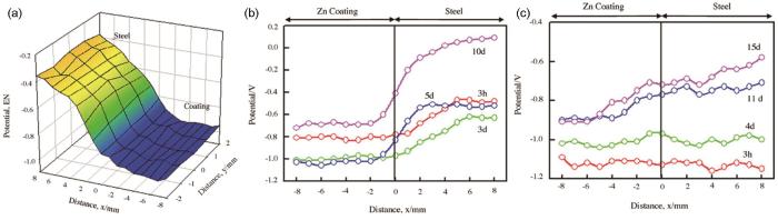 图3 298 K Zn/Fe电偶对表面电位分布[64]