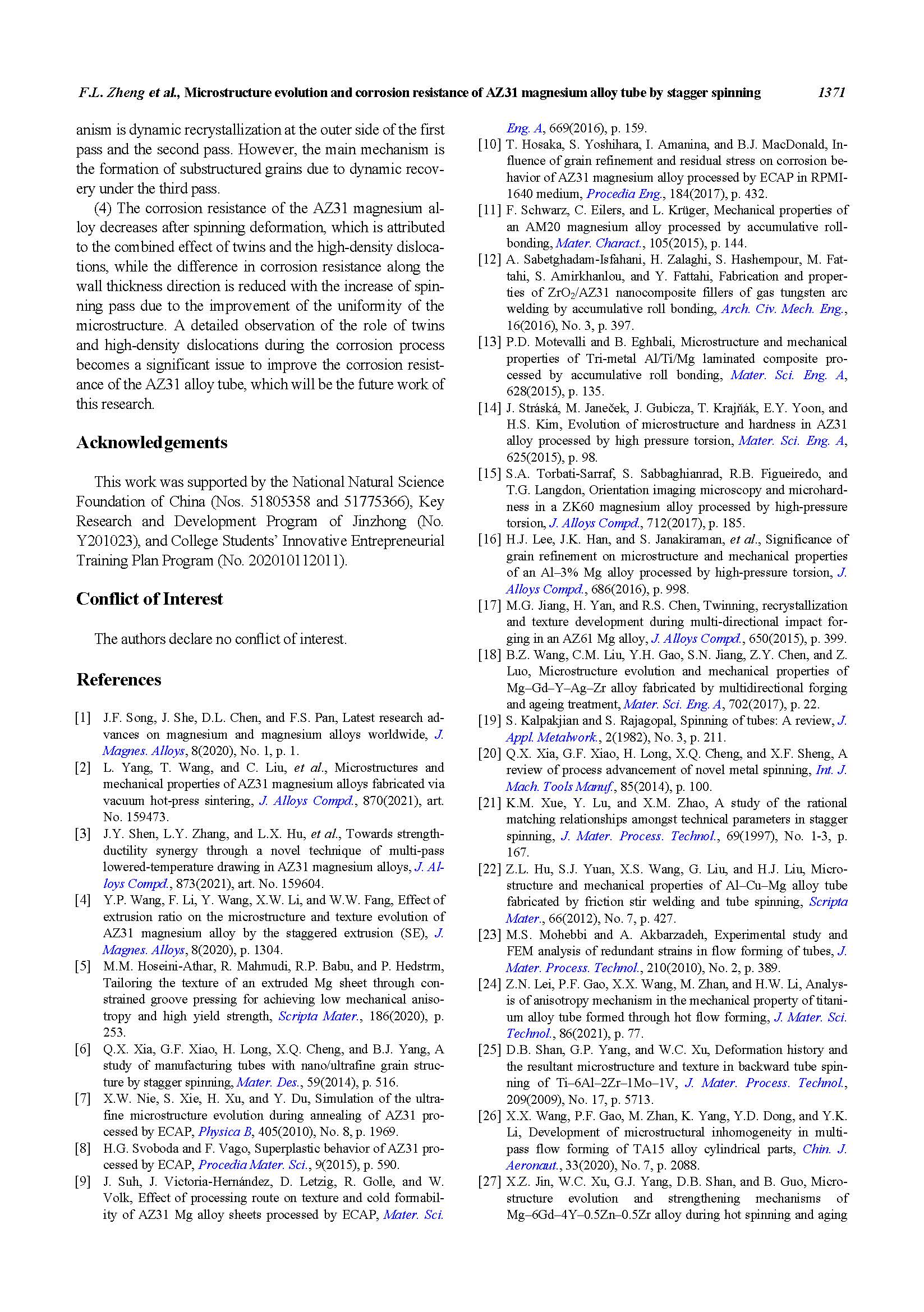 错距旋压AZ31镁合金管材的微观组织演变及耐蚀性能