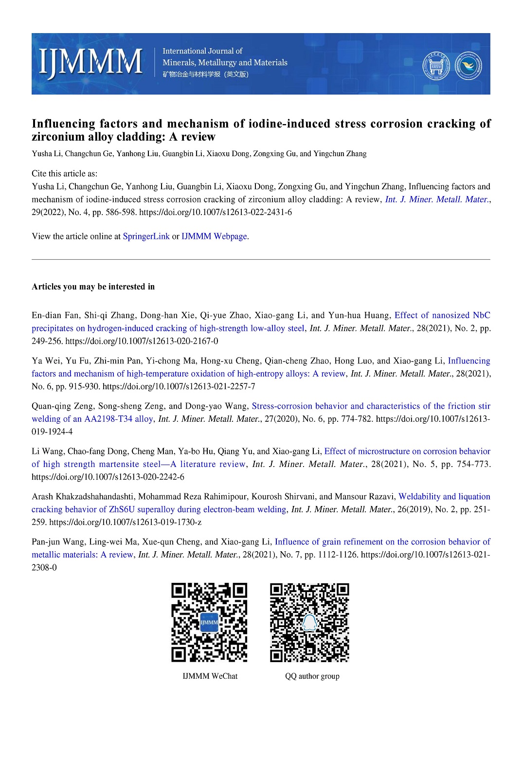锆合金包层碘致应力腐蚀开裂的影响因素及机理:综述