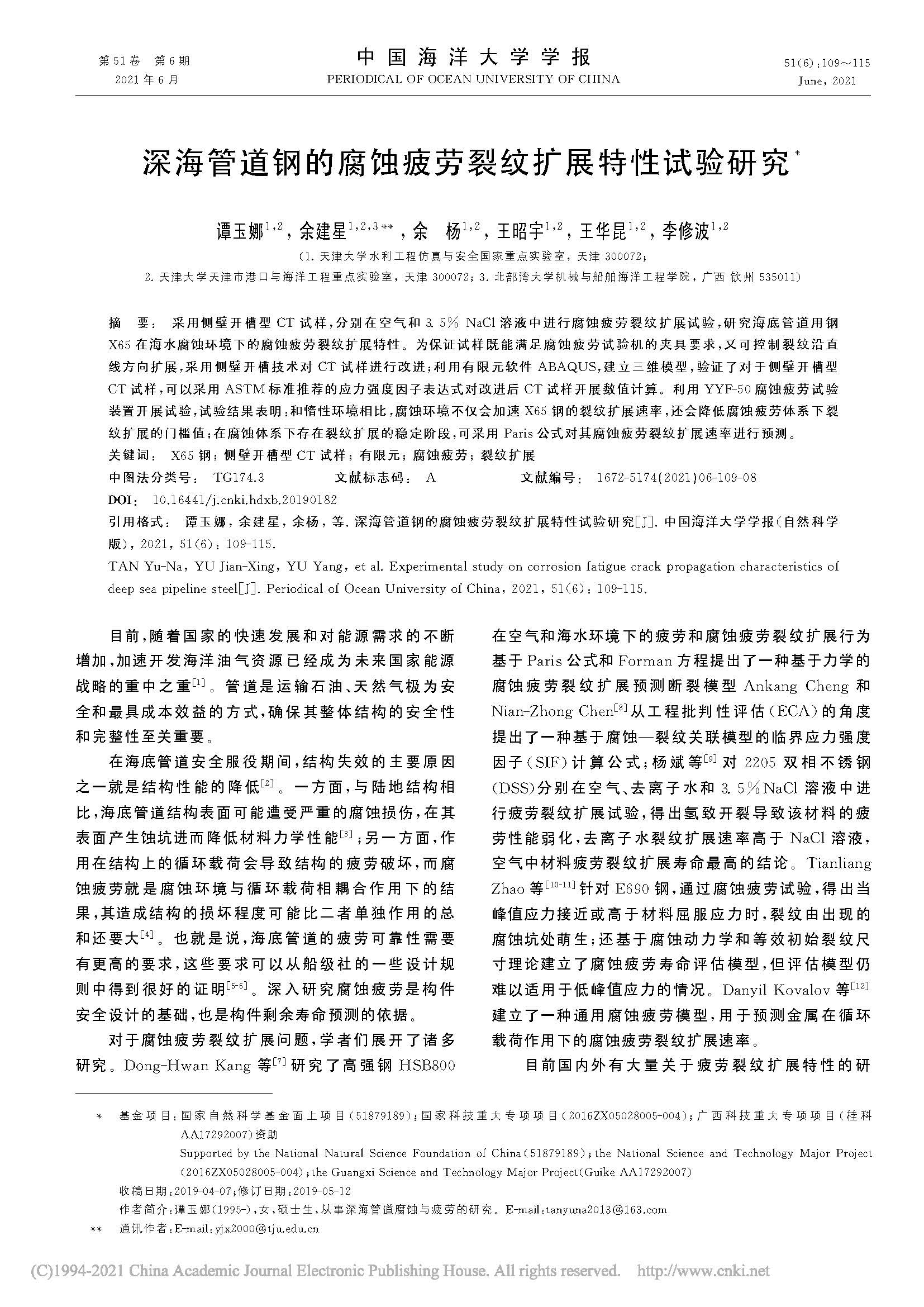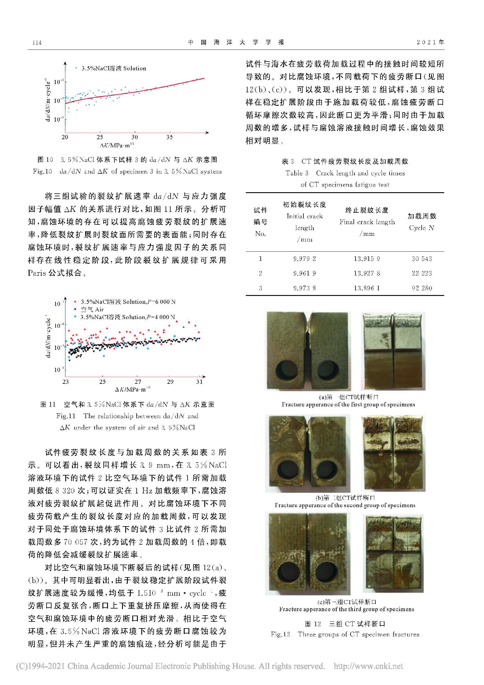 海洋工程结构用钢服役环境模拟及DH36腐蚀疲劳裂纹扩展