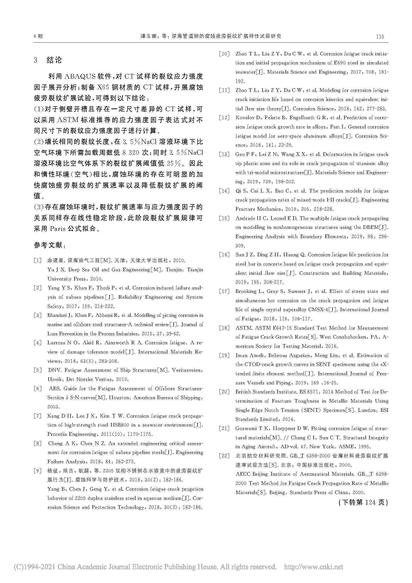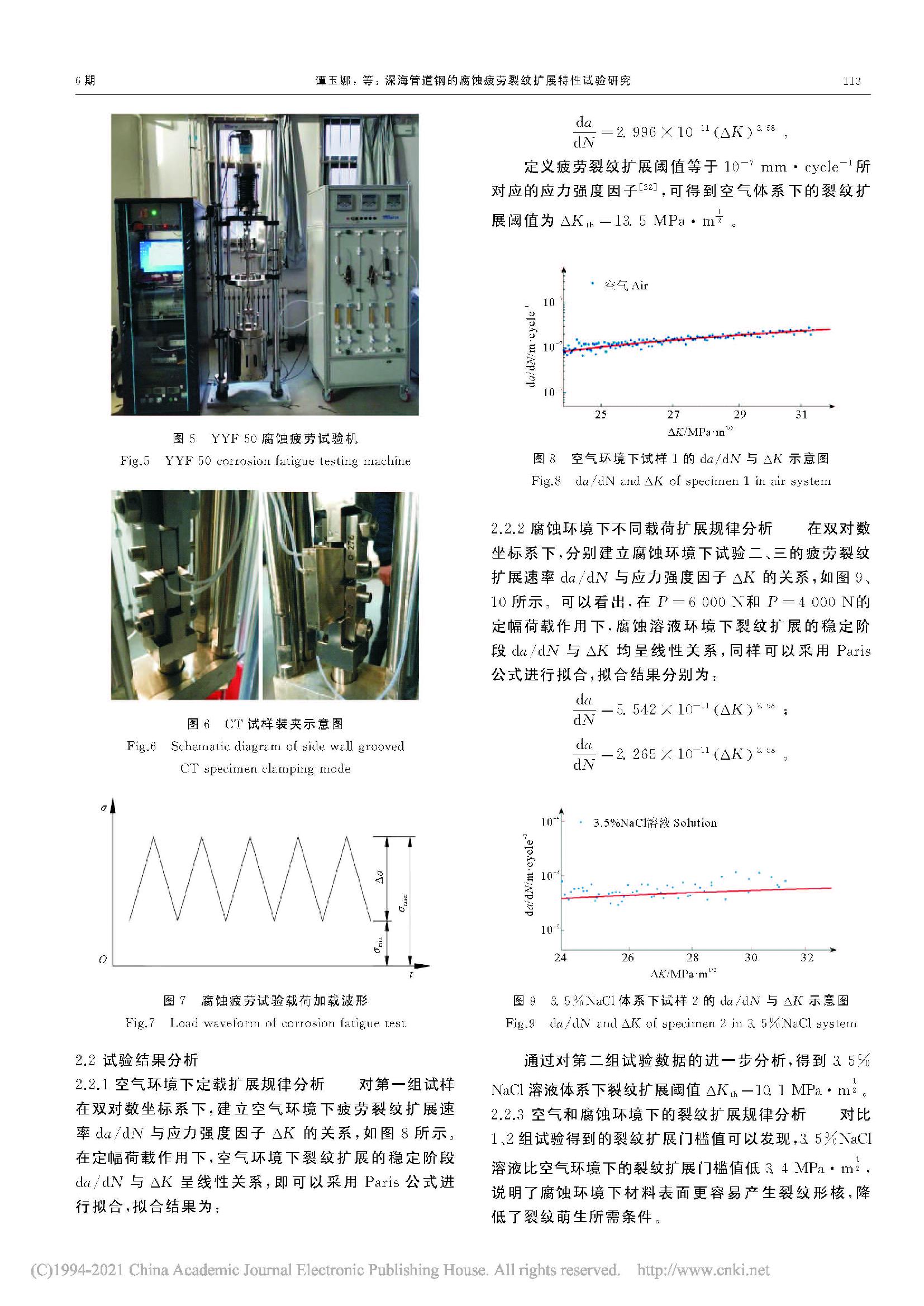 深海管道钢的腐蚀疲劳裂纹扩展特性试验研究