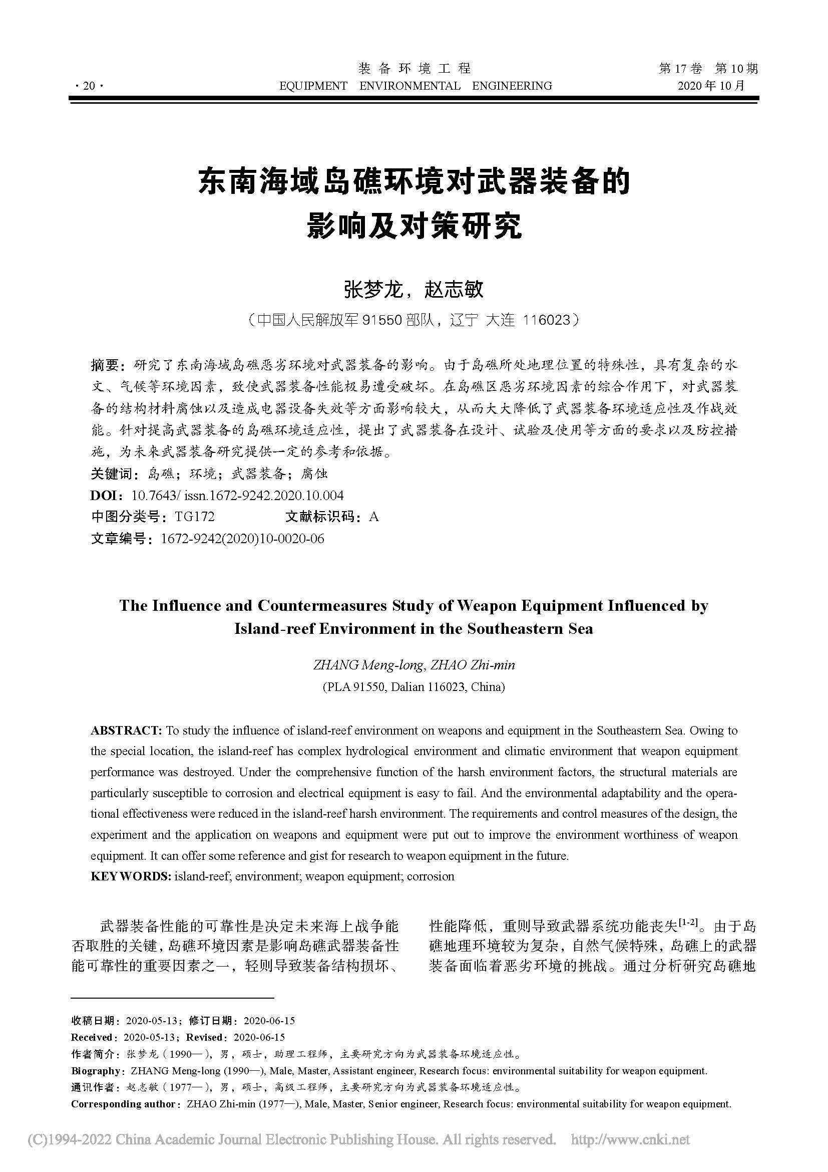 东南海域岛礁环境对武器装备的影响及对策研究