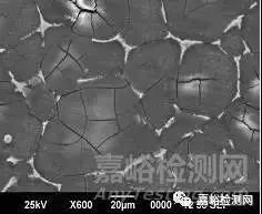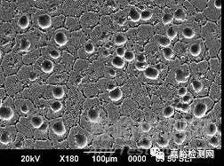 第三,当材料表面覆盖着较厚的腐蚀产物时,进行观察腐蚀形貌时一定要注意将取出腐蚀产物前后的形貌进行综合对比,才能获得准确的结论。两种材料在未去除腐蚀产物之前形貌相同,去除腐蚀产物后腐蚀形态可能会大相径庭。例如,316L不锈钢在80℃Na2SO4和NaCl混合溶液中腐蚀4小时后的腐蚀形貌同ZE41镁合金在NaCl溶液中腐蚀12小时的形貌基本相同,腐蚀产物都呈现龟裂状。但是,去除腐蚀产物后发现,二者的腐蚀形态截然不同:316L不锈钢80℃Na2SO4和NaCl混合溶液中发生的是均匀腐蚀,如图5,而ZE41发生的则是点蚀,如图6所示。