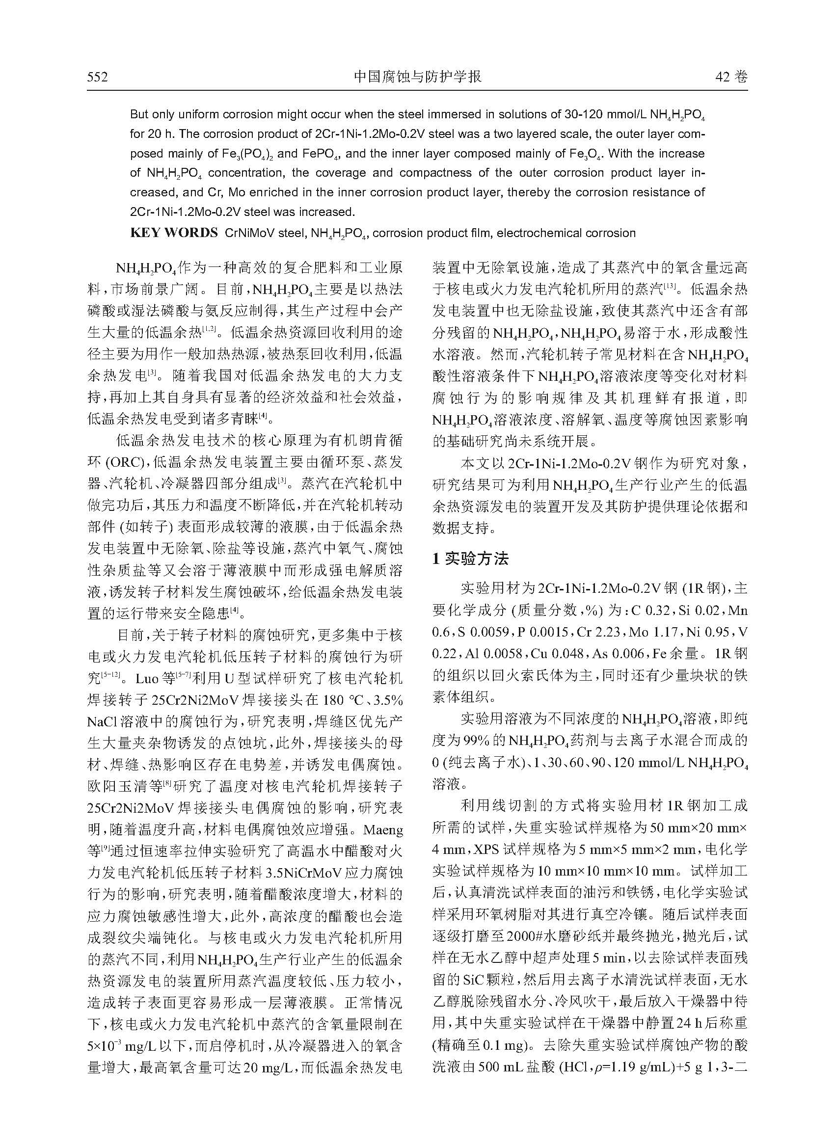2Cr-1Ni-1.2Mo-0.2V钢在NH4H2PO4溶液中的电化学腐蚀行为研究