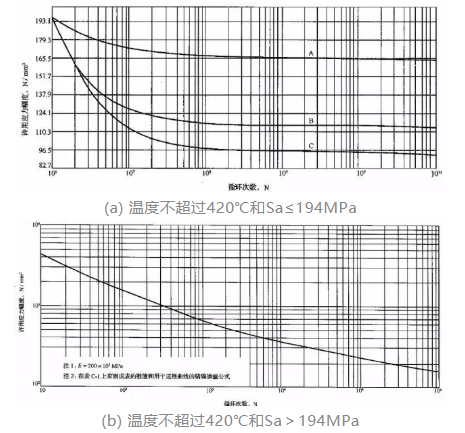 标准中明确“只需考虑由规定的运动循环所引起的应力,而无需考虑在循环中不变化的任何载荷或温度状态所产生的应力,因为它们是平均应力,而平均应力的最大可能影响已包含在疲劳设计曲线中”。因此,在使用S-N曲线时,只需要用应力的波动部分和许用应力幅相比较,而不必去考虑在循环中不变的应力。