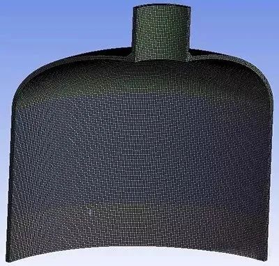 以下重点分析封头与接管连接的局部区域,并根据容器的特点对结构简化,取1/4模型(忽略法兰的),用于有限元分析的模型见图4,网格划分结果见图5。本模型主要采用六面体主导网格划分方法。单元类型是Solid186和Solid187单元。其中节点数395267,单元数为83551。