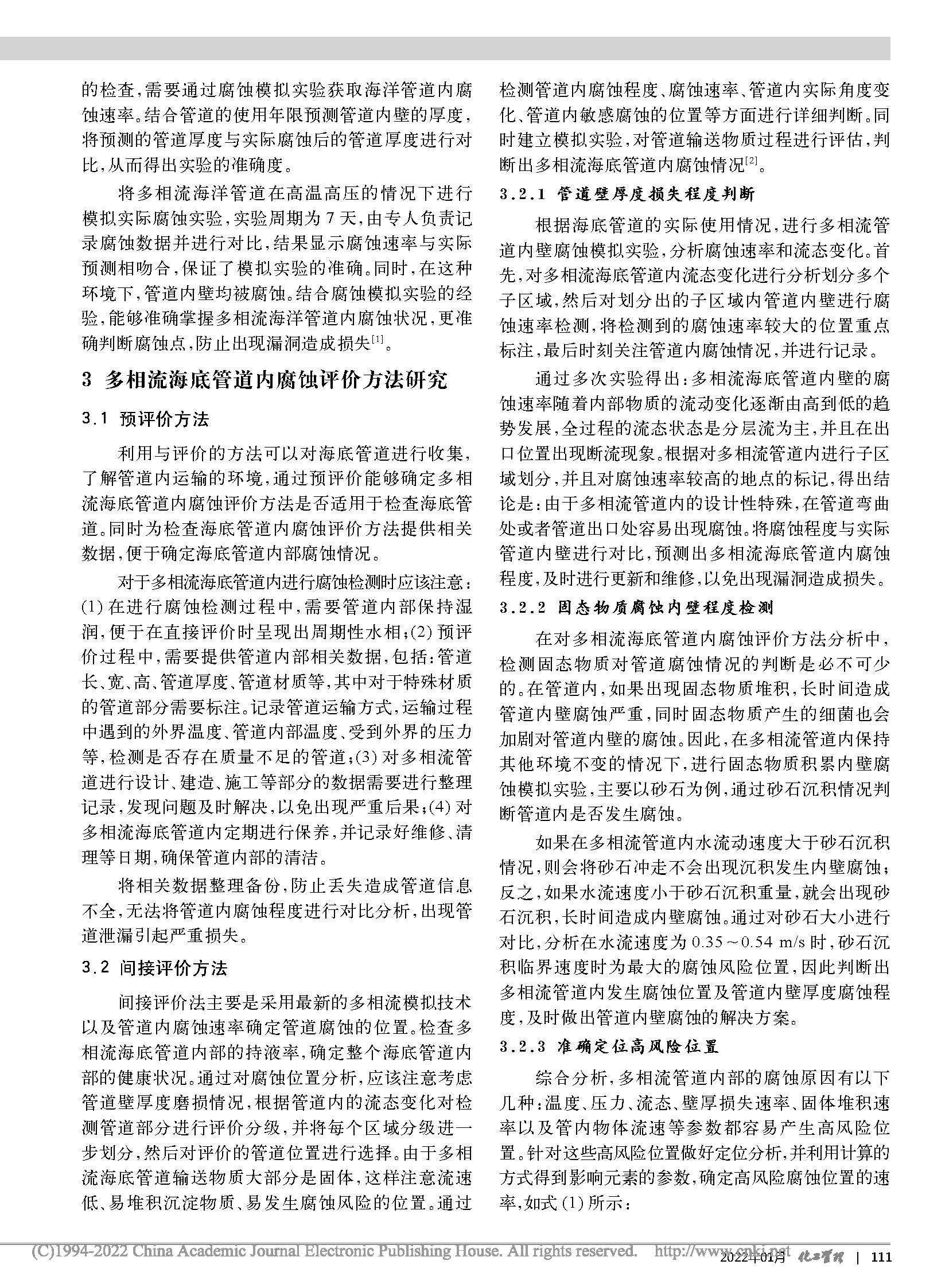多相流海底管道内腐蚀评价方法研究