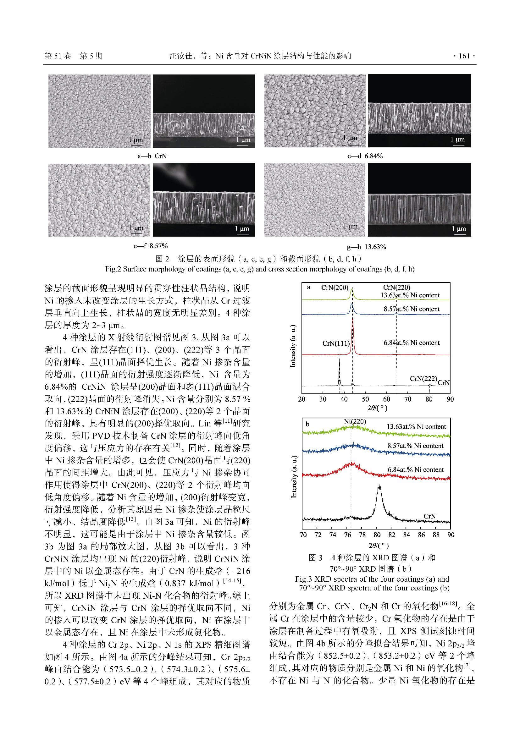 Ni含量对CrNiN涂层结构与性能的影响