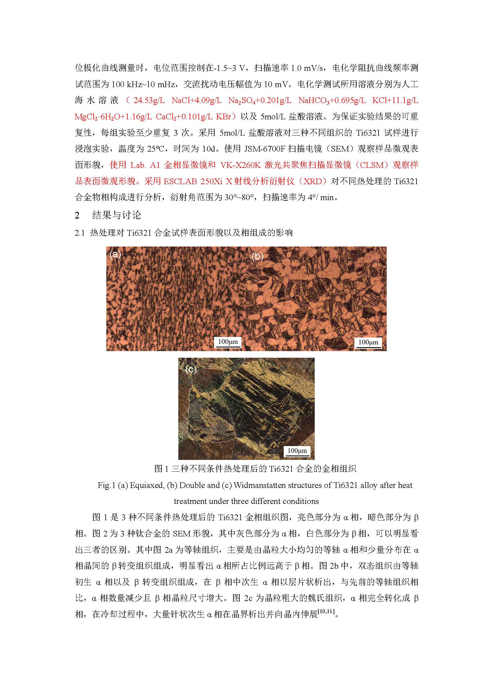 热处理工艺对Ti6321合金腐蚀行为的影响研究