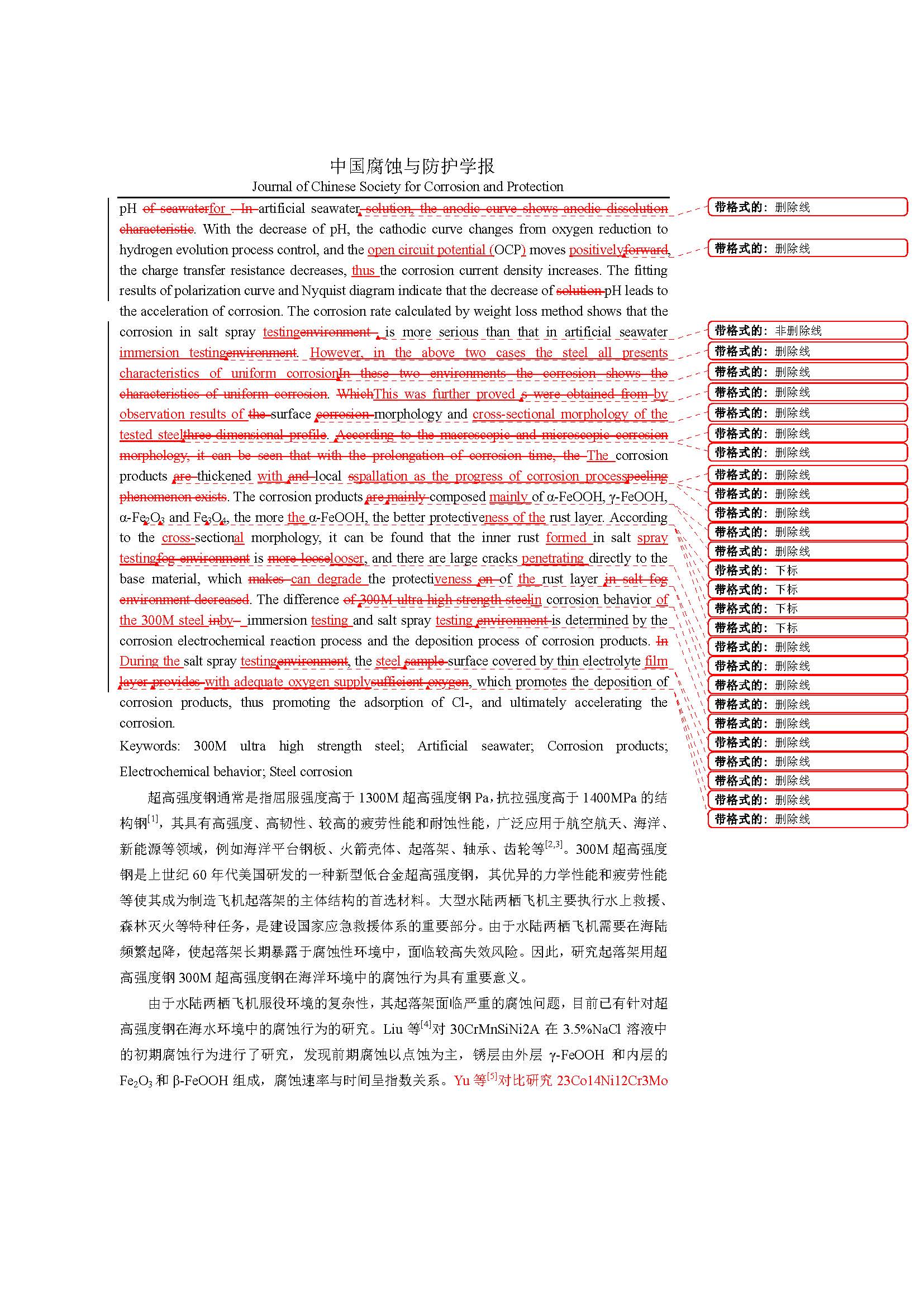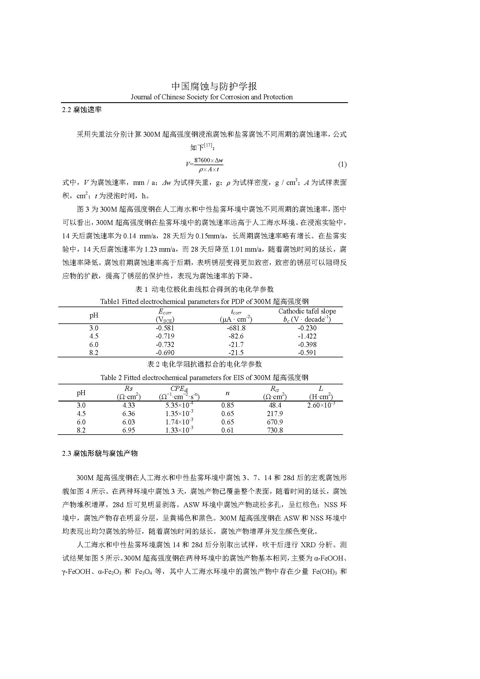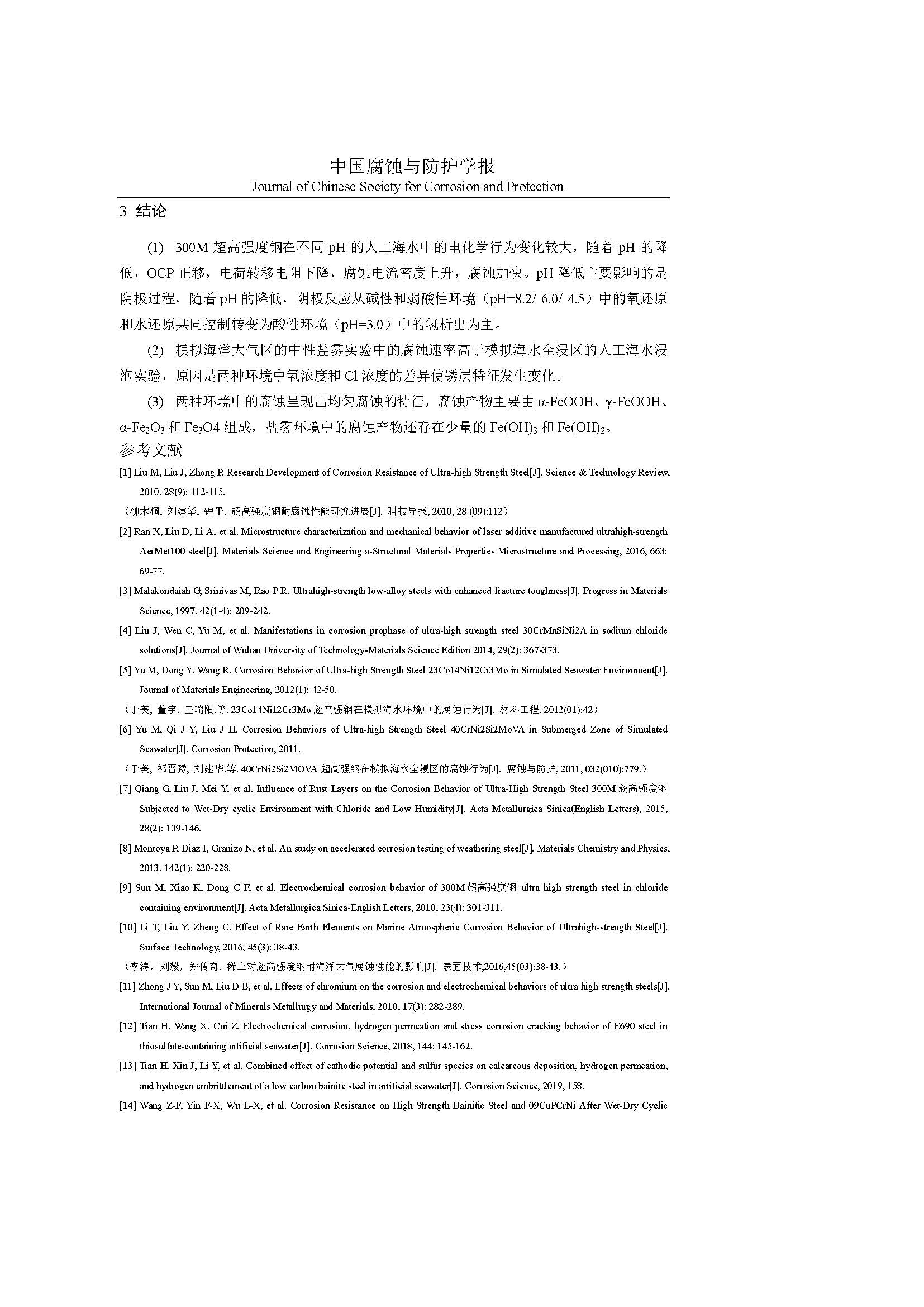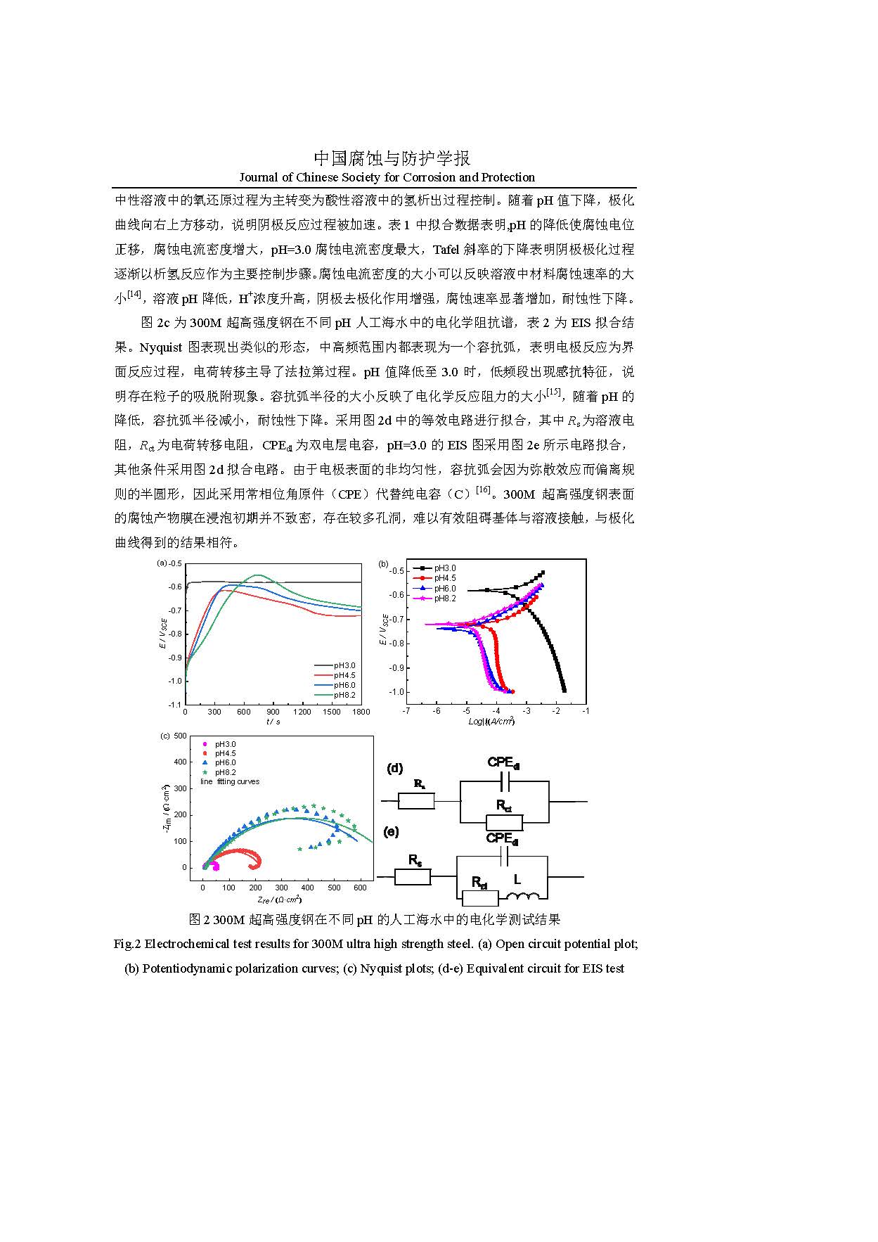 标签: 300M 超高强度钢, 人工海水, 腐蚀产物, 电化学行为