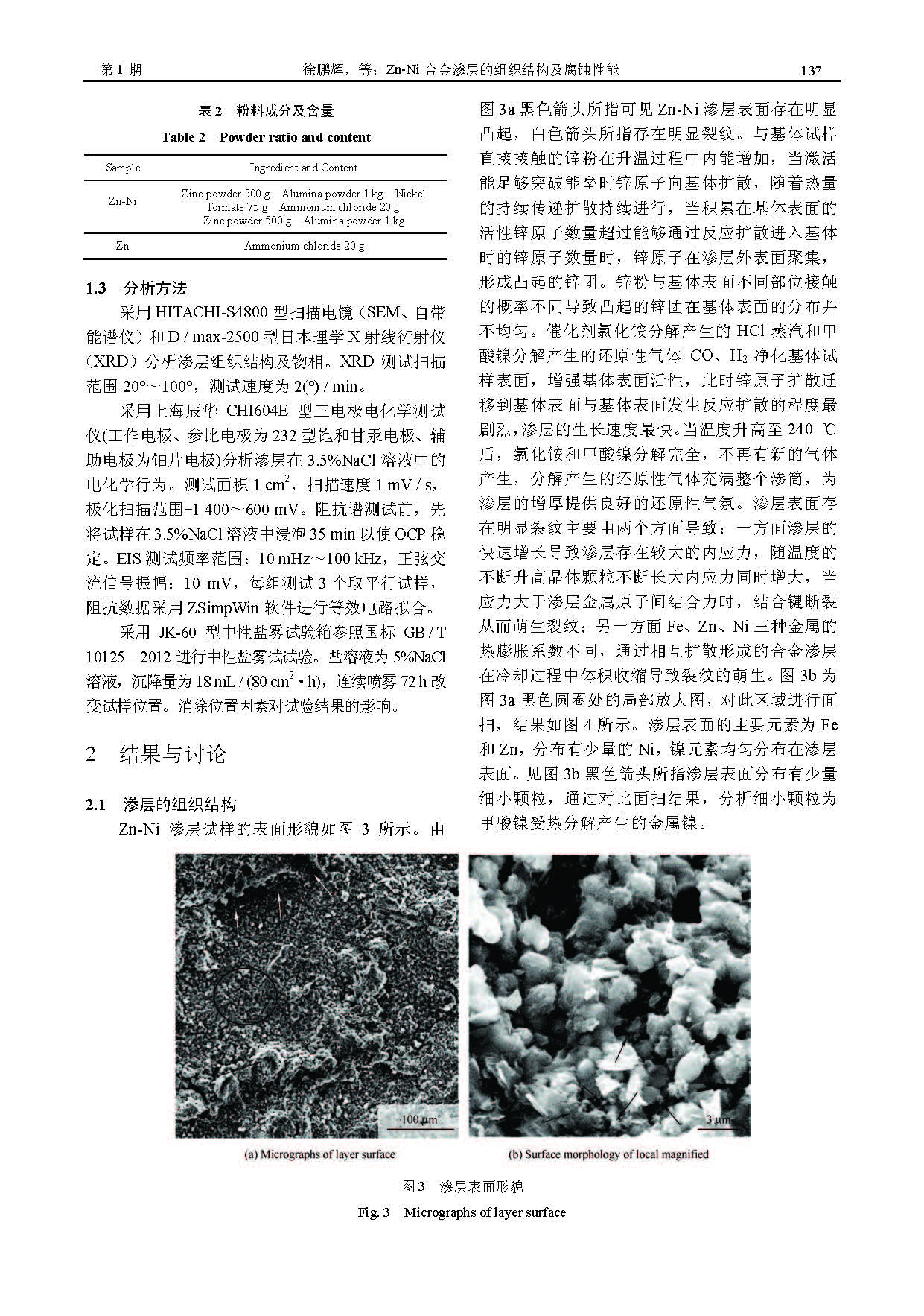 Zn-Ni 合金渗层的组织结构及腐蚀性能