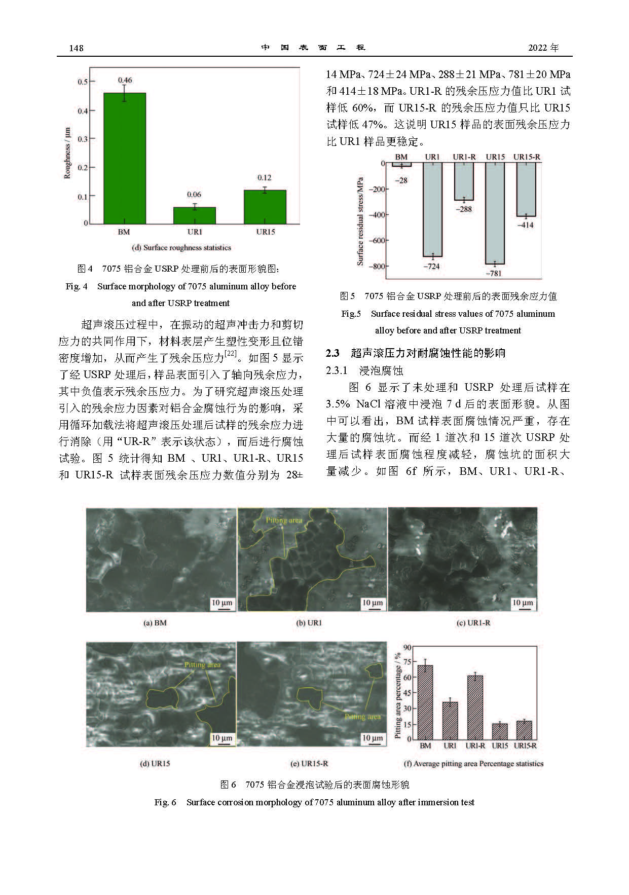 超声滚压对 7075 铝合金耐腐蚀性能的影响
