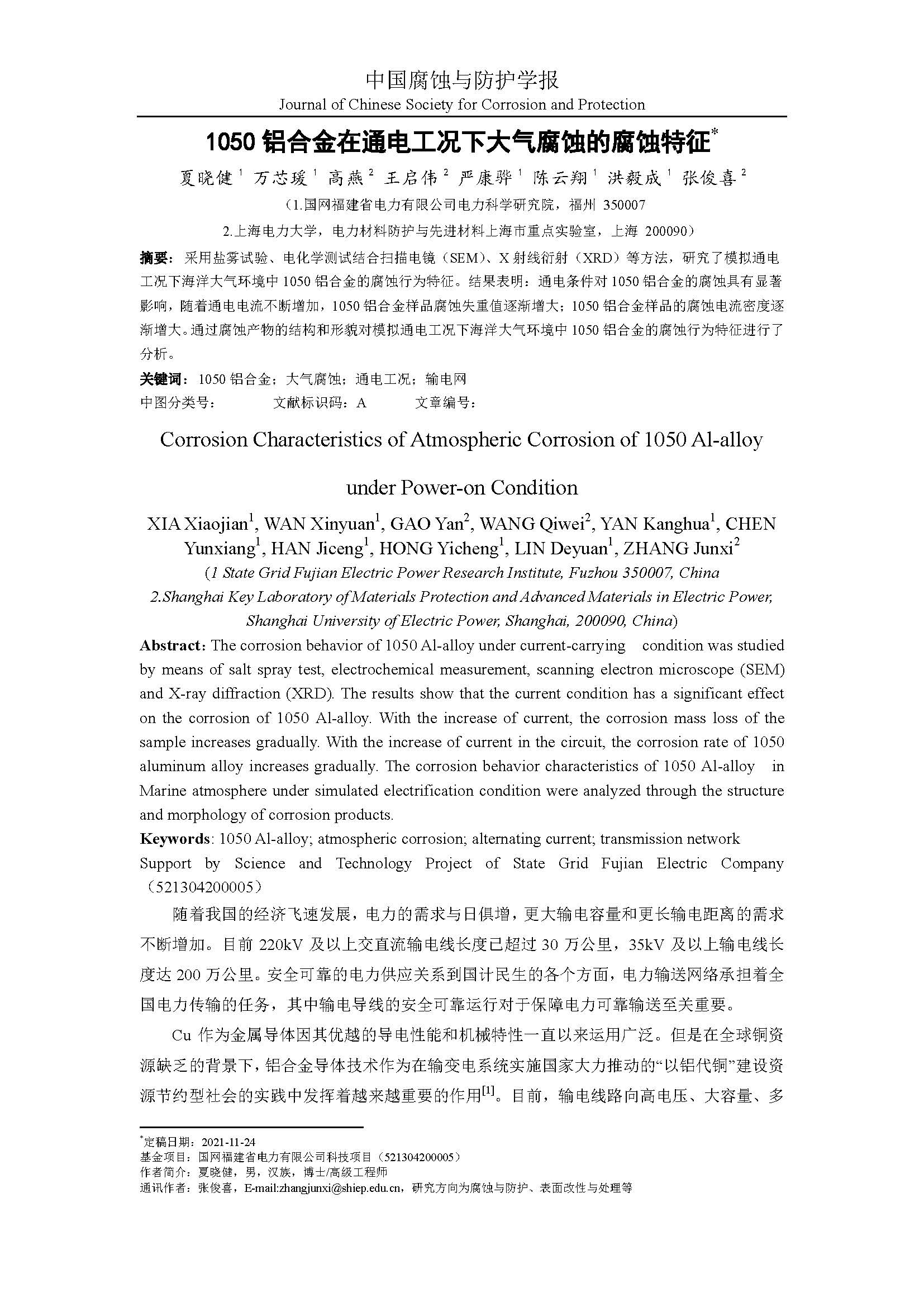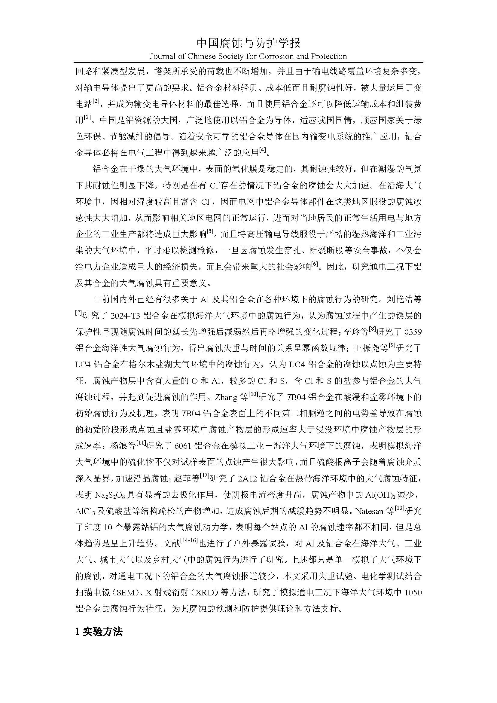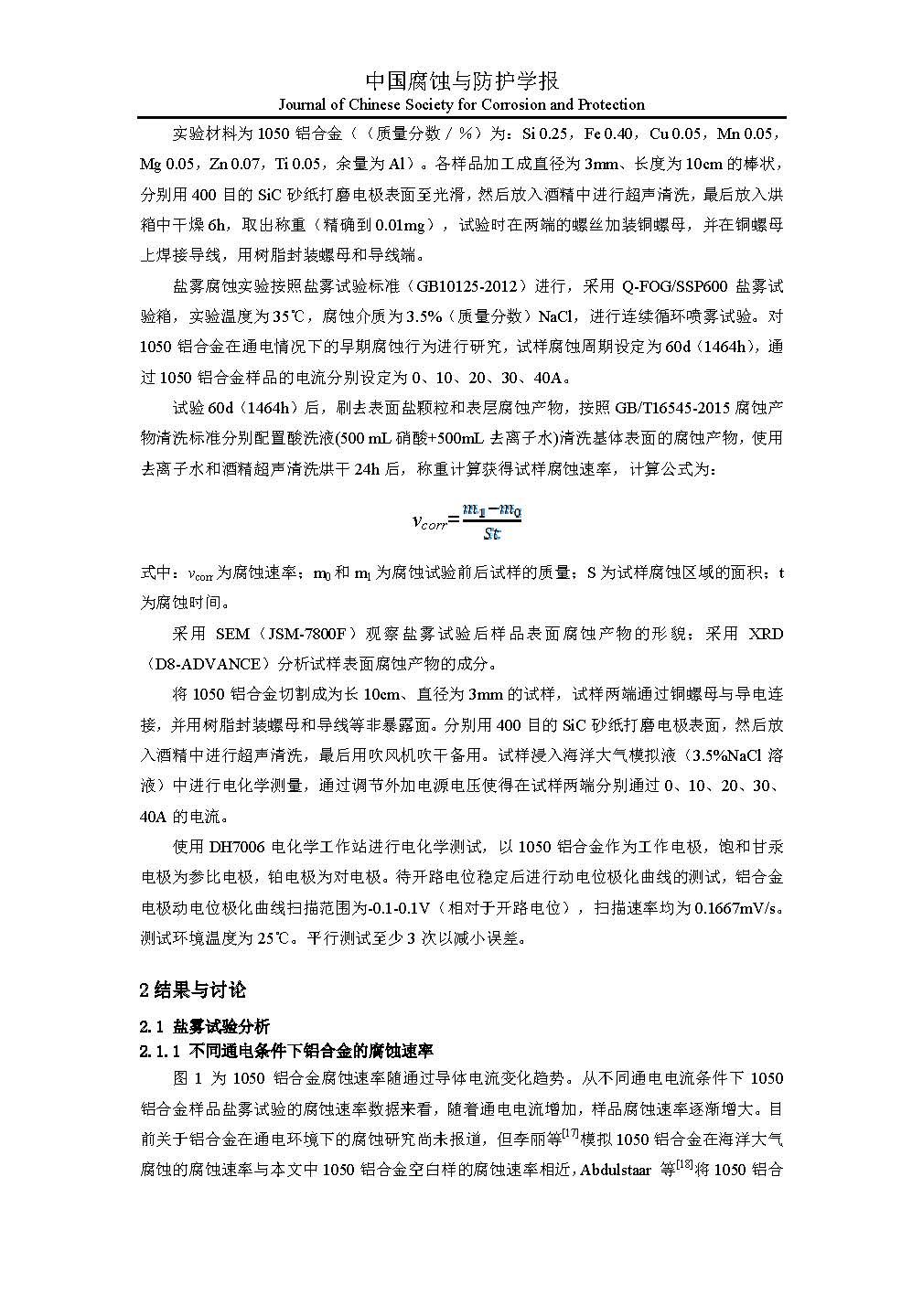 来源:中国腐蚀与防护学报