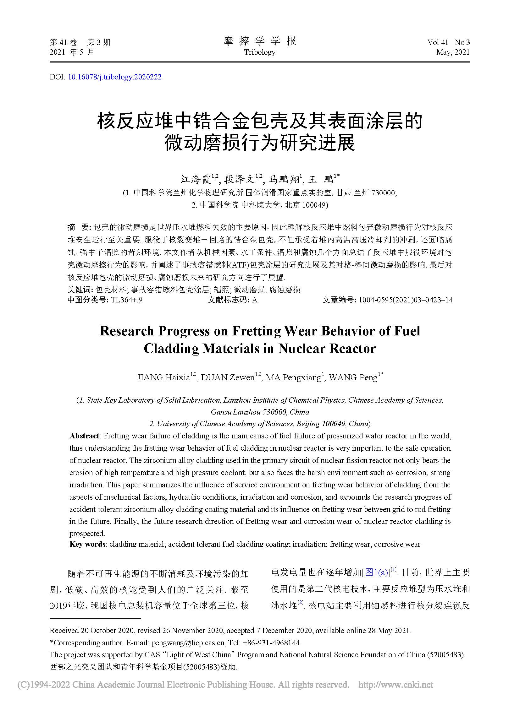 标签: 包壳材料, 事故容错燃料包壳涂层, 辐照